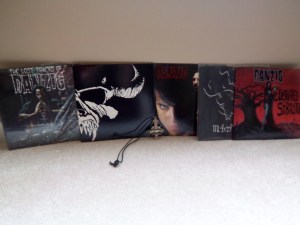 I haven’t decided what exactly I am going to do with all of these records.  I have framed and hung on my wall the Misfits ones and also have Black Aria on my wall because I love the cover art.  I also love displaying the colored records but for the 12″ ones it’s not as practical.  The blue Lost Tracks and red Deth Red Sabaoth would look great displaying them the way I display the 7″ records but will consume a lot of wall space.  I’m thinking of just getting the standard LP frames and arranging a Danzig wall with the records in a 3X3 grid in order of continuity.  I don’t have enough records to do so, yet, but it’s an idea.  I currently do not even own a record player so I don’t buy these to listen to them (I have CD for that) so I’m not concerned with having access to them at all times.  Even so, If I choose to hang them I’ll probably get some generic record sleeves and keep the vinyl someplace else to avoid placing stress on the LP sleeves.  Some of the older pieces have enough ware on them as it is.