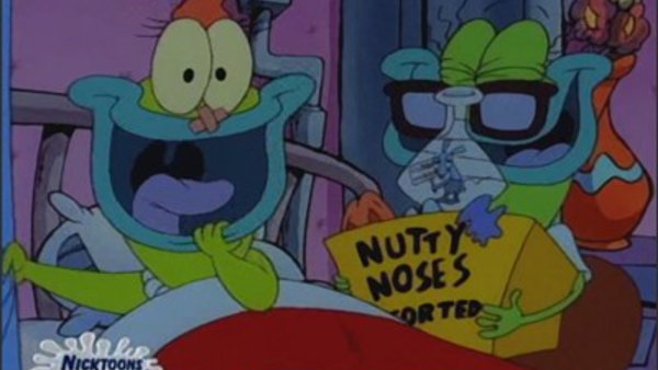 Season Three of the show never fails to be funny and the gags are really upped for this third season. The show’s first Halloween episode “Sugar Frosted Frights” has a lot of horror-themed gags and it’s paired with another spooky episode, “Ed is Dead.” One of the show’s funniest episodes is also present in this season in “Fish-N-Chumps.” The boys go fishing, only to find themselves in turn being fished, and all the while Filburt drives Heffer nuts with his enthusiasm for a new watch. Tom Kenny does some excellent ad-libbing with a captain character who features two peg legs, peg arms, and even peg eyes (Family Guy totally ripped him off)! My favorite might be “Fortune Cookie” though, if I have to pick a most funniest episode since it features the incredibly quotable fortune that Filburt receives, “Bad luck and extreme misfortune will infest your pathetic soul for all eternity.” There’s an episode where Bev (Charlie Adler) is accidentally given a new nose which reveals to her that her husband stinks, a crazed tour guide stalks Rocko and Heffer on a trip to France, and there’s even a famous nude scene in “Camera Shy.”