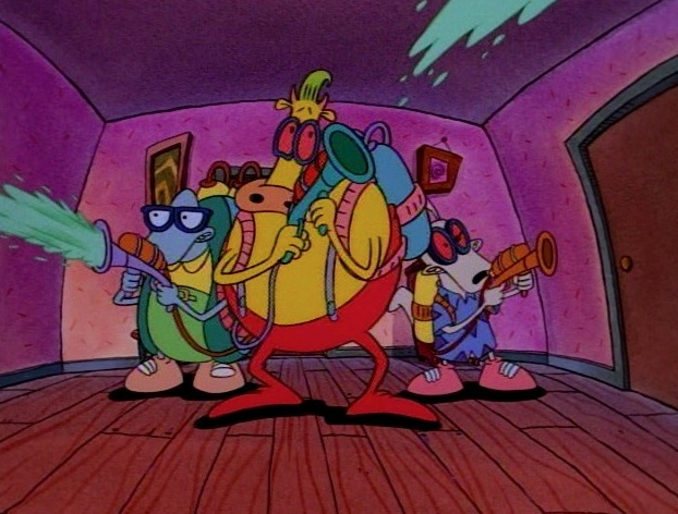 The show is still wildly funny in many places. I think a lot of fans consider season three of the show to the peak for it, but it’s hard to find any real drop-off with season four. “Sailing the Seven Zzz’s” might be the show’s funniest episode. The plot concerns Ed Bighead and his somnambulism in which he thinks he’s a pirate and makes nights miserable for Rocko. Heffer and Filbert see this as an opportunity to mess with him, and it gets pretty wacky. And speaking of Ed, he basically assumes a starring role in several episodes of this season. My favorite might be “Closet Clown” where we find out Ed enjoys playing a clown, but hides it from everyone. It’s yet another episode of the show that might be dealing with a sensitive subject, such as closeted individuals, but doing it in a very funny, natural, way.