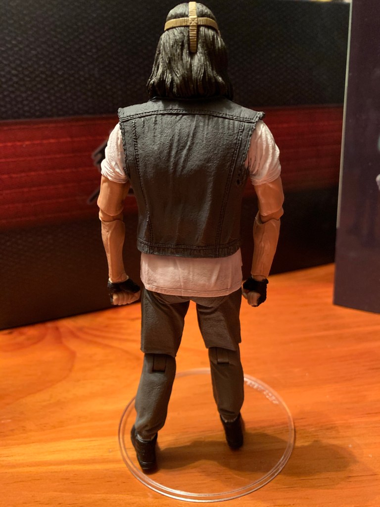 As expected, Casey comes with a lot of goodies. He has his golf bag to store everything in which fits easily over his head and arm. It’s soft plastic so it’s fairly light, but once it’s full of stuff it’s no longer quite so light. The strap is rather thin and doesn’t disconnect so you’ll want to handle with care to not snap it at one end. For weapons, Casey comes with a pair of baseball bats (sadly, no Jose Canseco signature spotted on either), a hockey stick (left-handed, interestingly), a goalie stick, golf club (wood), and of course the infamous cricket bat. The weapons all look great with a paint-wash applied to nearly all of them to give them a weathered look. Most feature athletic tape, and the only one that looks brand new is the golf club. And it should, since that’s from the end of the film when Casey uses it to finish off Tatsu (“I’ll never call golf a dull game again.”) and is a nice touch since NECA could have chosen to omit it given the set is so scene specific. You can also fit everything into the golf bag with some effort, though the giant goalie stick looks a bit ridiculous sticking out of the bag. In the film, he only ever needed room for the two bats and the cricket bat so being able to fit them all wasn’t even a realistic goal, but they pulled it off. Not much to complain about either in terms of screen accuracy. I noted that the hockey stick is left-handed, but it looks like a righty stick on screen. And Casey certainly swings that cricket bat right-handed. The bats also probably could have been lighter in color, but I can’t say either thing is something that bothers me. These weapons are a lot of fun and I’m glad to see that Casey has a full assortment.