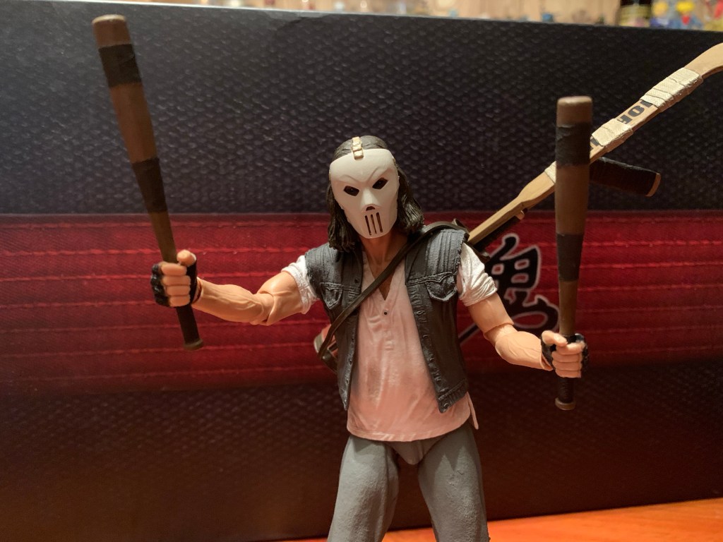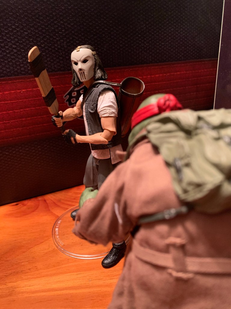 Casey Jones is a more than worthy addition to what is perhaps the most impressive line NECA has ever produced. The likeness all of the figures from the first TMNT movie have been incredible, and Casey is no exception. I would be remiss if I didn’t point out the fine work of sculptors Trevor Zammit, Kyle Windrix, and Trevor Grove. And no one should be snoozing on the Raphael in this set either. I was a bit on the fence with him and questioned whether or not I would have purchased a single-carded version of the character in disguise, but now that I have him I’m pretty happy to say that I do. My collection would have been lacking if I had a Casey Jones with no Raph to go along with him. As much as I identify Casey with April, a two-pack of them on a porch swing is certainly not nearly as exciting as the confrontation between mutant hero and vigilante.
