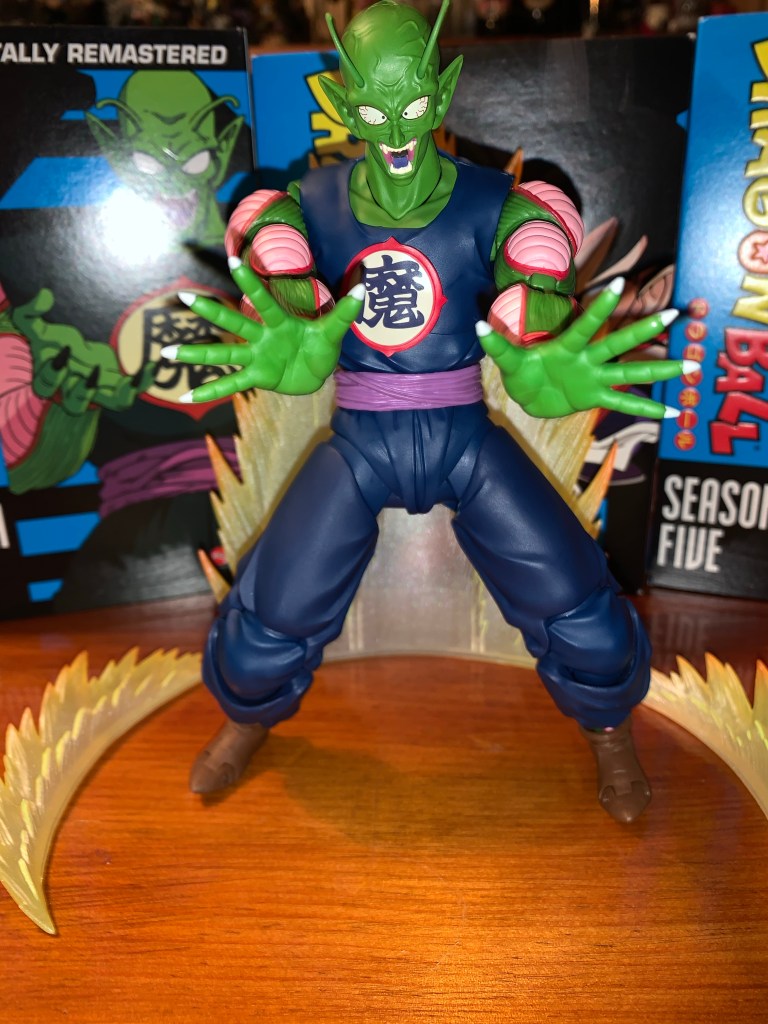 King Piccolo is an awesome action figure from Bandai/Tamashii Nations. He’s a great and necessary addition to the Dragon Ball line as he has a terrific look and his action figure covers all of the bases. Maybe some have a desire to add an elder King Piccolo to their display, but I’m all set with this one. I’m curious if Bandai will do a proper Piccolo Jr. in the near future that’s distinct from the Dragon Ball Z figure. When he first showed up, Piccolo Jr. had a rather skinny appearance so it would make sense for Bandai to do a new sculpt. We’ll see. For now, I’m just pleased there’s a lot to collect for Dragon Ball fans and I hope Bandai keeps them coming!