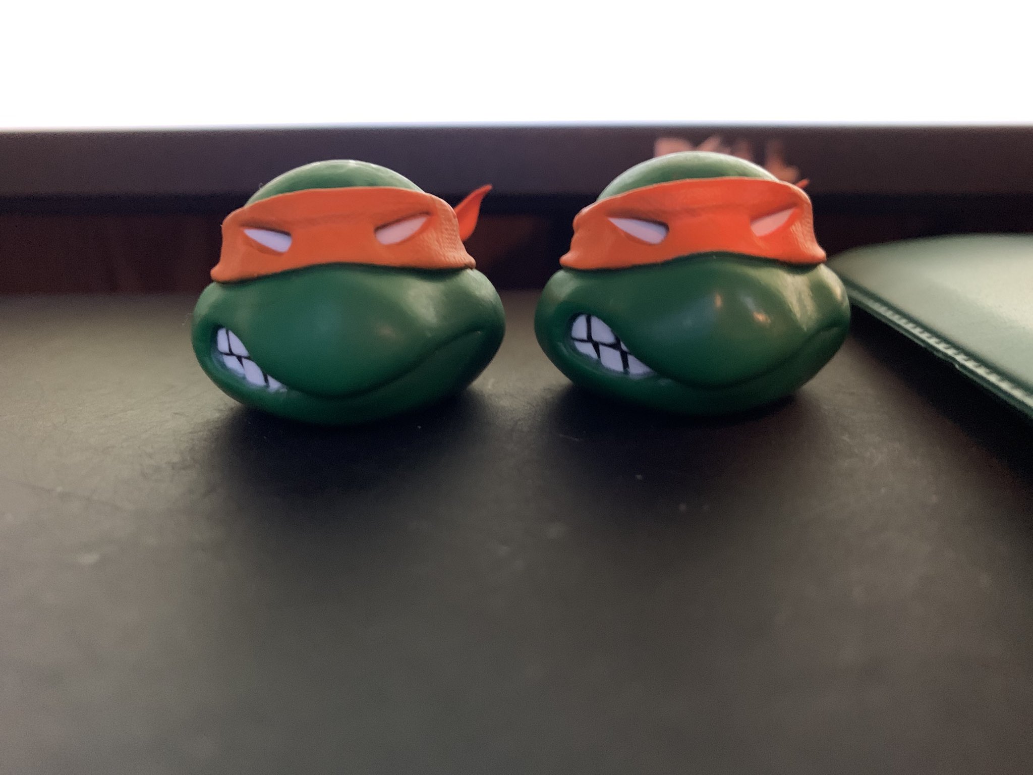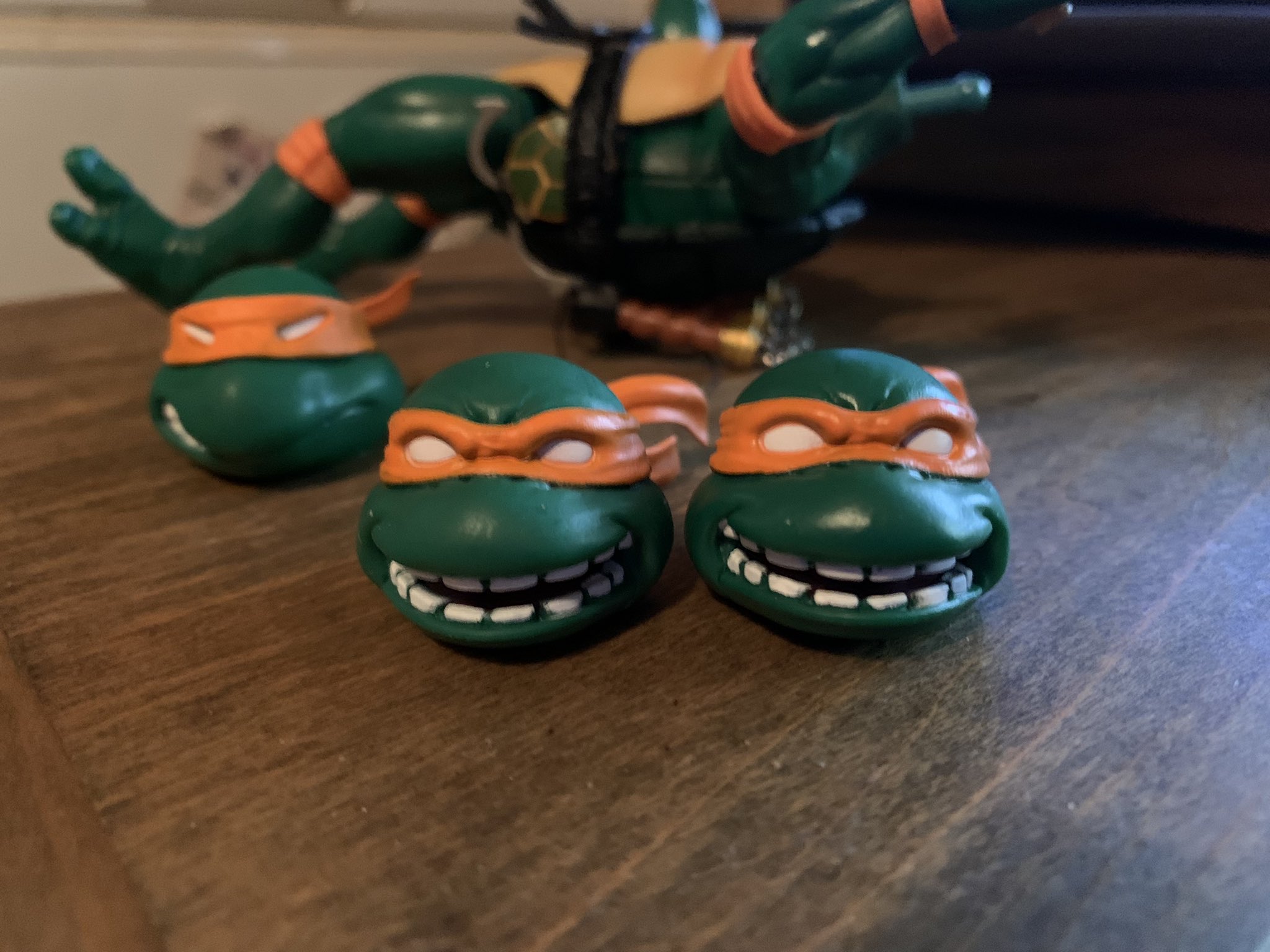 And upon receiving my new Mikey, I did notice something that escaped me in my initial review. Truly, it wasn’t really something I could have seen unless I had two figures in front of me that featured this distinction. And that is, my new Michelangelo has a coating on his default head that gives it more of a textured, matte, finish. It’s subtle, but it’s something that’s on Leo and Raph. And with Leo, I noted in my review that he had a little swath on his face where this was missing and it seemed to be widespread. I have no idea why this is the case with Michelangelo though. There’s only been one factory run so it’s probably not a running change, unless it was something that was supposed to happen and the factory noticed it mid-production, but it’s pretty odd. It’s hard to predict if this will be an issue in the collector community to the point that Super7 will be asked to respond. I definitely prefer the matte look, but maybe some will like the glossy appearance since it more resembles the original. Who can say? If it matters to you though, there’s not a lot you can do since most of these are purchased online. If buying from eBay, you can inspect pictures. If you find it in a comic book store then obviously you can get a better look at it, but you’ll also likely be asked to pay a significant mark-up.
