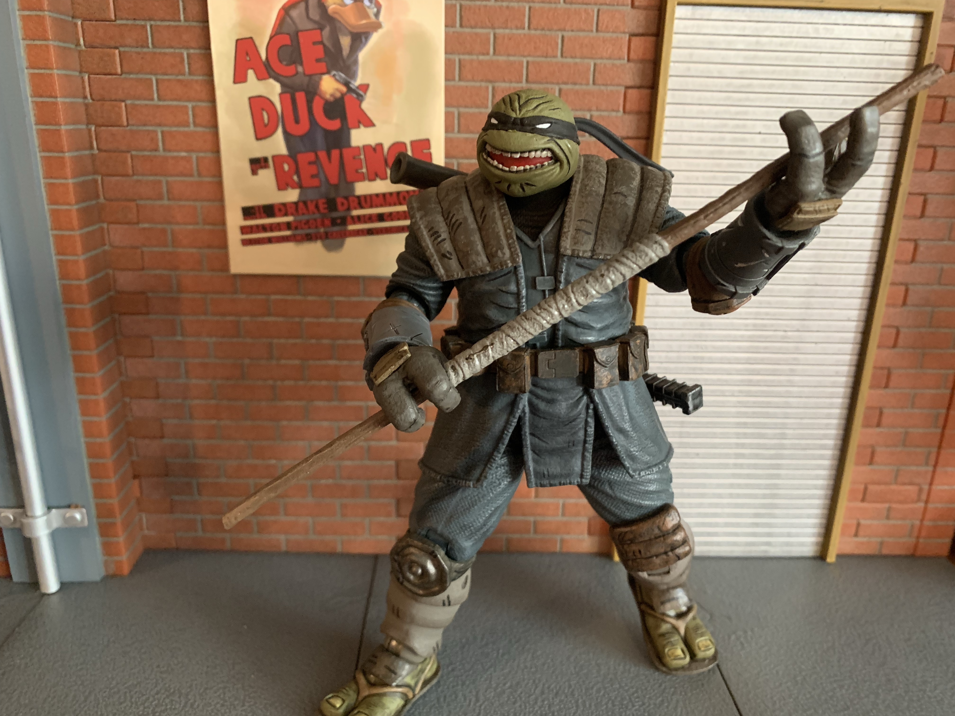 The Last Ronin is a flash-forward to a possible end for the Teenage Mutant Ninja Turtles when the lone surviving turtle has long graduated from the term “teenage.” I covered every issue here and found it to be mostly entertaining, but what I really loved about it were the character designs. Upon reading that very first issue one of my takeaways was “Man, it would be really cool to get an action figure of this guy.” NECA’s Randy Falk agreed when he basically gushed over the series so it was not a surprise at all when the company unveiled their own take on The Last Ronin.
