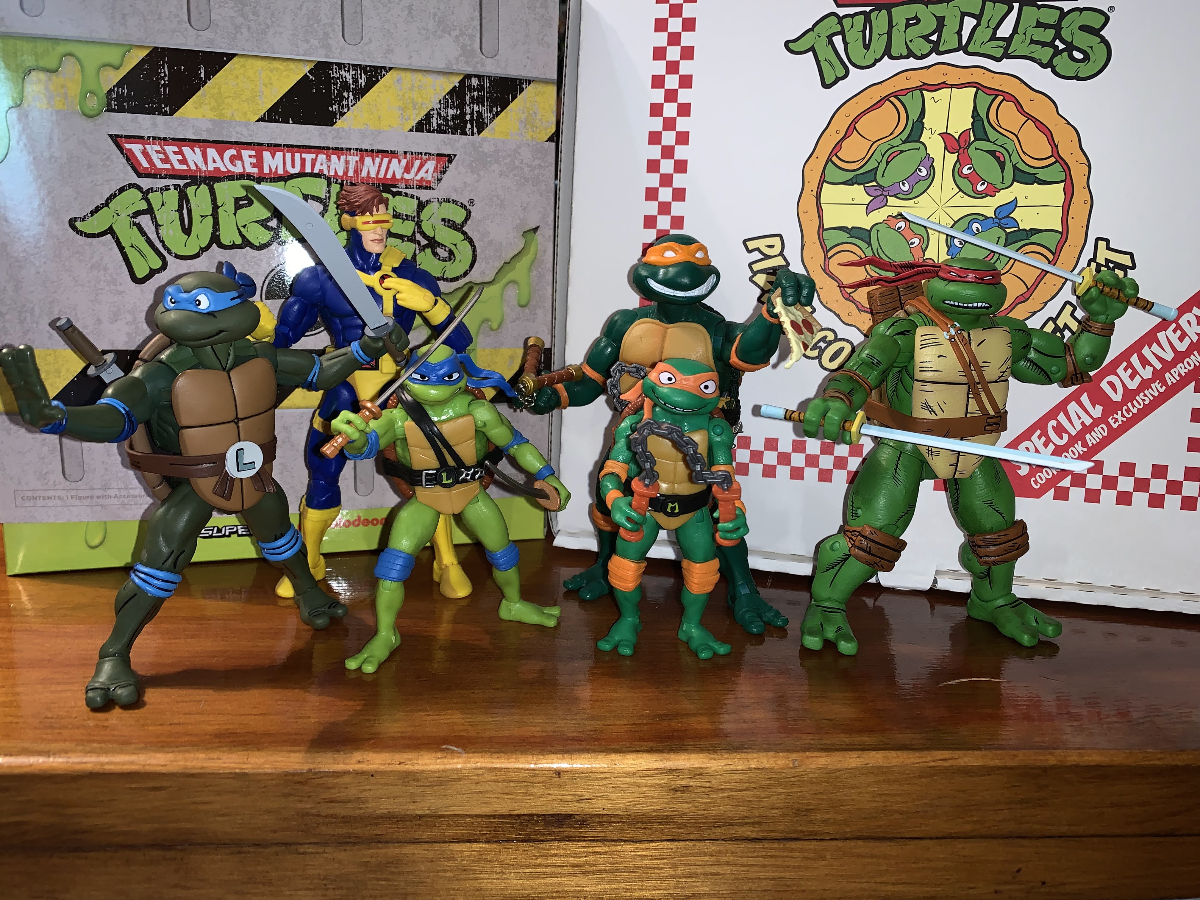 These turtles are pretty fun to look at and handle. They won’t blow anyone away, but I can’t imagine anyone declaring them trash. And I haven’t even mentioned the best part: they’re only 10 bucks! Yes, that’s right, for less than the cost of one Super7 turtle you can get all four. That’s an incredible deal in today’s market and hopefully it leads to good things for Playmates and the TMNT franchise. I’d love it if either of my kids threw these guys on their Christmas lists, though it’s probably not happening in my house, but not for lack of trying. There are some shortcomings with the figures: the articulation is so-so, the opacity on the whites could be better, and Mikey’s weapons also aren’t optimal. If you want better paint, there are special editions of each figure that are painted-up to look more like the film, but they’ll cost you triple what these do. The issues are easy to overlook at this price though and these guys will look great with your other Playmates figures. Hopefully the movie is just as good!