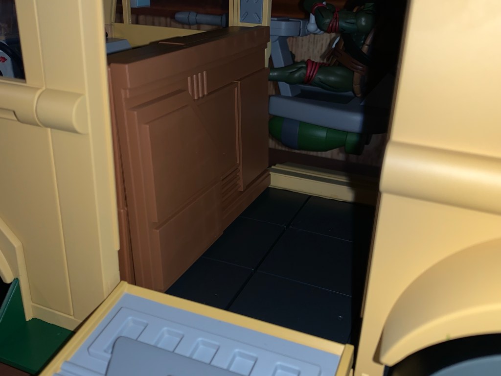 Speaking of show inconsistencies, the wall behind the front seat seemed to change constantly. Sometimes it was wide open which is the default look for the Turtle Van. Other times, there was a brown hip wall which NECA included which can be plugged into the back of the bench seat. And then on other occasions there was basically a full wall which, for some reason, featured a ladder. I remember seeing that ladder as a kid and wondering where the heck it came from. I think there was, on occasion, an opening in the top for the turtles to emerge from, but my memory could very easily be faulty at this point. Nonetheless, the ladder wall is also included so you can have the Turtle Van resemble basically whatever version shown on TV that you want. It’s the type of attention to detail that I think collectors appreciate of a company like NECA and it’s something other companies just don’t seem to care about.