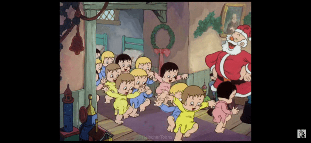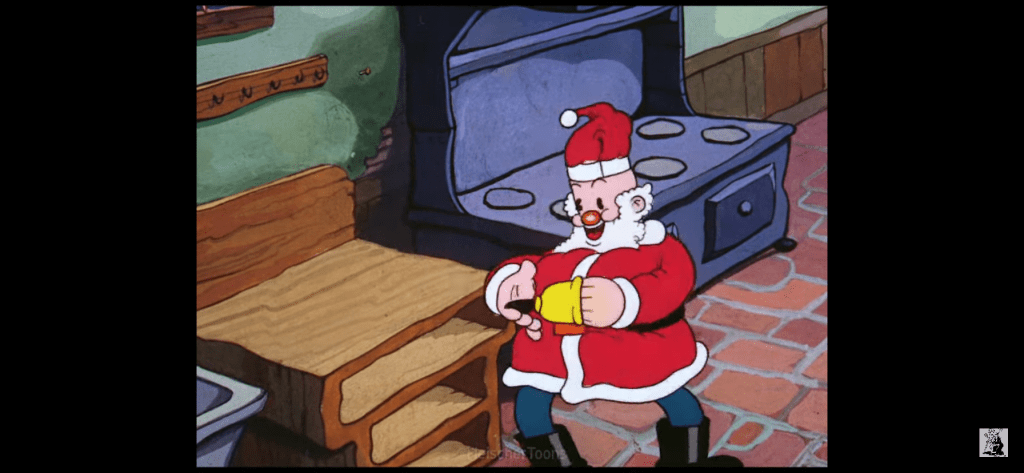 This one opens with a lively instrumental that share its title with that of the short. The music is credited to three individuals: Tot Seymour, Sammy Timberg, and Bob Rotherberg. One, or all three, of those individuals is responsible for the song itself the lyrics to which can be found on the Wikipedia entry for this short. It’s a serviceable little Christmas song that’s easy to relate to since it’s celebrating the big payoff that is Christmas. Perhaps if there was a bit more meat to the song it could have been more of a hit and had some legs eventually leading to covers by Michael Bublé and Kelly Clarkson. It did get a second lease on life in a modified format for the Popeye short Let’s Celebrake about a year later. That short is actually a New Year’s cartoon instead of a Christmas one.