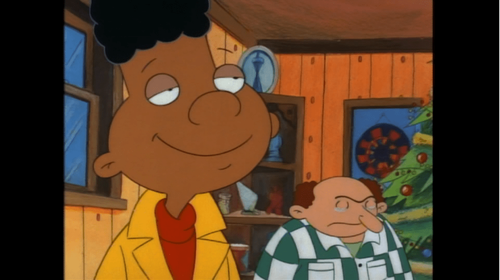 We shift to the apartment building Arnold resides in and get a peek at Mr. Hyunh (Baoan Coleman) ascending the stoop to enter the building. He pauses and looks over his shoulder just before he enters and the wind appears to whisper something. He enters and walks into a festive setting. Arnold’s grandmother, Gertrude (Tress MacNeille), appears to be finishing up decorating the tree and shouts “Happy Thanksgiving!” to all of the tenants present in the common area. I don’t know if it’s a joke that she says Happy Thanksgiving or if it actually is Thanksgiving. The events that follow don’t appear to last a month, but I suppose there could be a big time-jump that’s not explained. Arnold’s grandpa, Phil (Dan Castellaneta), announces they can now draw names for their annual secret Santa. Oskar (Steve Viksten) passes around a bowl and everyone pulls a name, only they’re all Oskar. They call him on his bullshit and he just laughs it off before they pass out the real names. From what little I remember of this show, I do recall Oskar being a selfish d-bag who mostly gets away with it due to his cheerful disposition. Phil requests Gertrude play some Christmas music as they start over and she starts playing “Yankee Doodle” on the piano which is a lowkey funny joke as no one reacts to it. I’m starting to think grandma is just a wee-bit senile. They all take a name, including Arnold, who gets Mr. Hyunh. He looks at the older fellow with a look of disappointment, but one that clearly stems from him being at a loss as to what he could get him for Christmas.