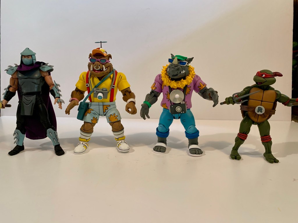 Pack your bags and grab the sunscreen because today we’re heading to Florida! It’s vacation time folks, and even the bad guys deserve a little fun in the sun sometimes. Coming from NECA Toys we have another fun variant of the duo Bebop and Rocksteady. Always more comic relief than true threat, the boys come dressed for the theme park as they accompanied the boss man down to Florida in an episode of the classic cartoon series which resulted in the further mutation of the punk frog Napoleon. As this line has gone on, I’ve become more and more drawn to the silly offshoots and Bebop and Rocksteady have provided ample opportunities for such. We’ve had them as rabbits, robots, and superheroes and now we have them as tourists. The only question is does anyone need a couple of dimwitted mutants in floral patterns?