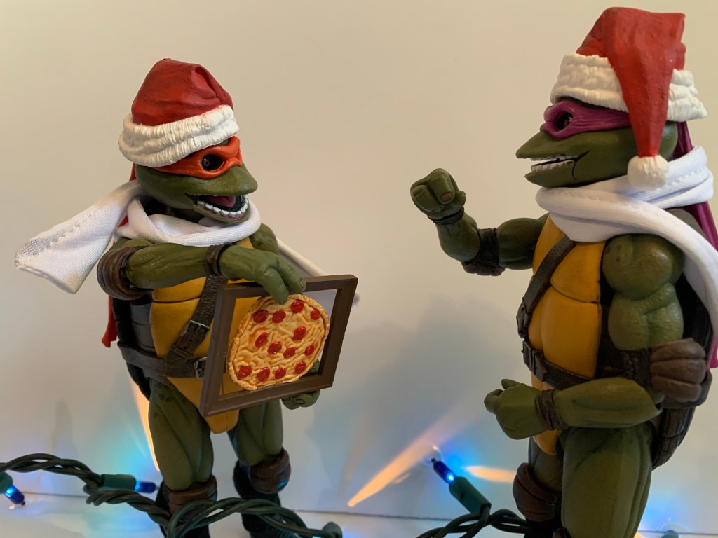 Criticisms aside, if you want some Christmas themed TMNT figures your options are pretty slim. It’s basically the ReAction figures Super7 did a few years back (which I have, but kept on card) or the Christmas plush of Raphael from back in the day. Maybe we’ll get a figure in the future from NECA based on the Michelangelo one-shot which took place at Christmas. And since Super7 is going down the 2k3 rabbit hole, maybe we can get Christmas turtles from the episode of the show based on that one-shot. What I’m saying is this set is fine, but we need more Christmas turtles! And while I think this set is too expensive for what it is, I am glad it exists. Figures based on an obscure and pretty terrible Christmas special is something I find fun and action figures should be fun. Now, if you’ll excuse me Christmas is coming and I need to deck the halls with pepperoni.