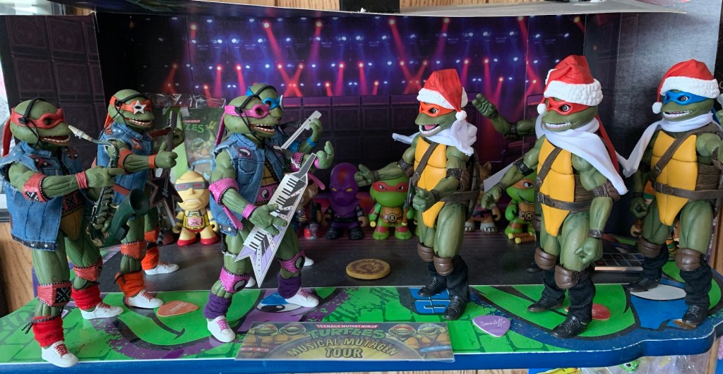 In 2020, NECA Toys released a set of action figures based on the old stage show. They called the Musical Mutagen Tour and it brought those ugly ass turtles to the world of plastic in a rather convincing manner. It was a convention exclusive that was also made available at Target since it was the summer of 2020 and conventions weren’t happening. Ever since that release though I had wondered if a set of figures based on that terrible Christmas special were in the cards. NECA likes to do holiday themed releases and we’ve seen Gremlins get more than a couple. They’ve also done Misfits and Elvira and there’s probably more I’m forgetting or choosing not to remember. TMNT is their biggest seller these days and it was dying for a Christmas release of some kind and 2024 ended up being the time for it.