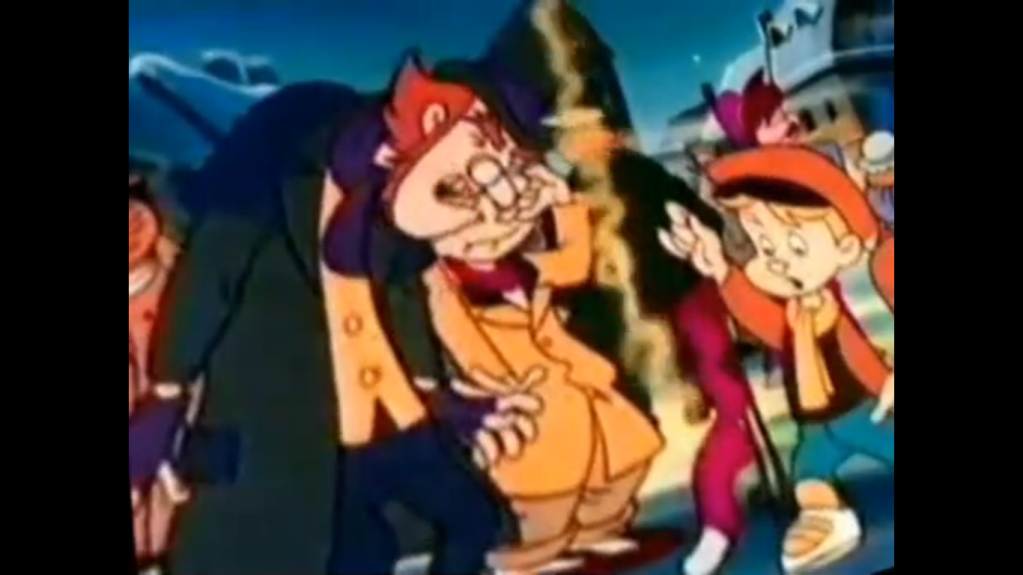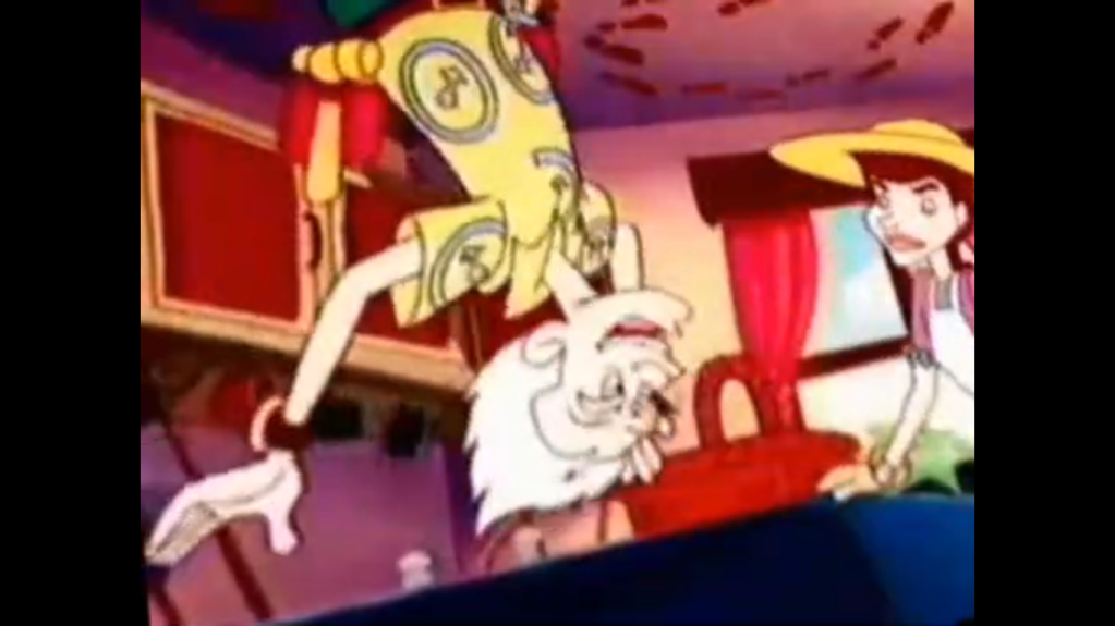 Back to the Future the TV series is a pretty mediocre cartoon from the 90s. Well, I am judging it on this one episode which is admittedly unfair, but I also did watch it a bit as a kid and that was pretty much my opinion then too. I didn’t stick with this show week in and week out and I fell off pretty fast. I’m not sure I even made it to this episode, though I did get a few of the Happy Meal toys. As such, I couldn’t justify buying this thing on physical media hence the awful screen caps. This blog isn’t monetized, after all. The video I watched was cropped and rotated slightly in addition to just being kind of lousy quality. It could be a VHS rip, as the show was released on VHS, which would explain the quality. Or it was intentionally made to look bad so as to avoid a copywrite strike.