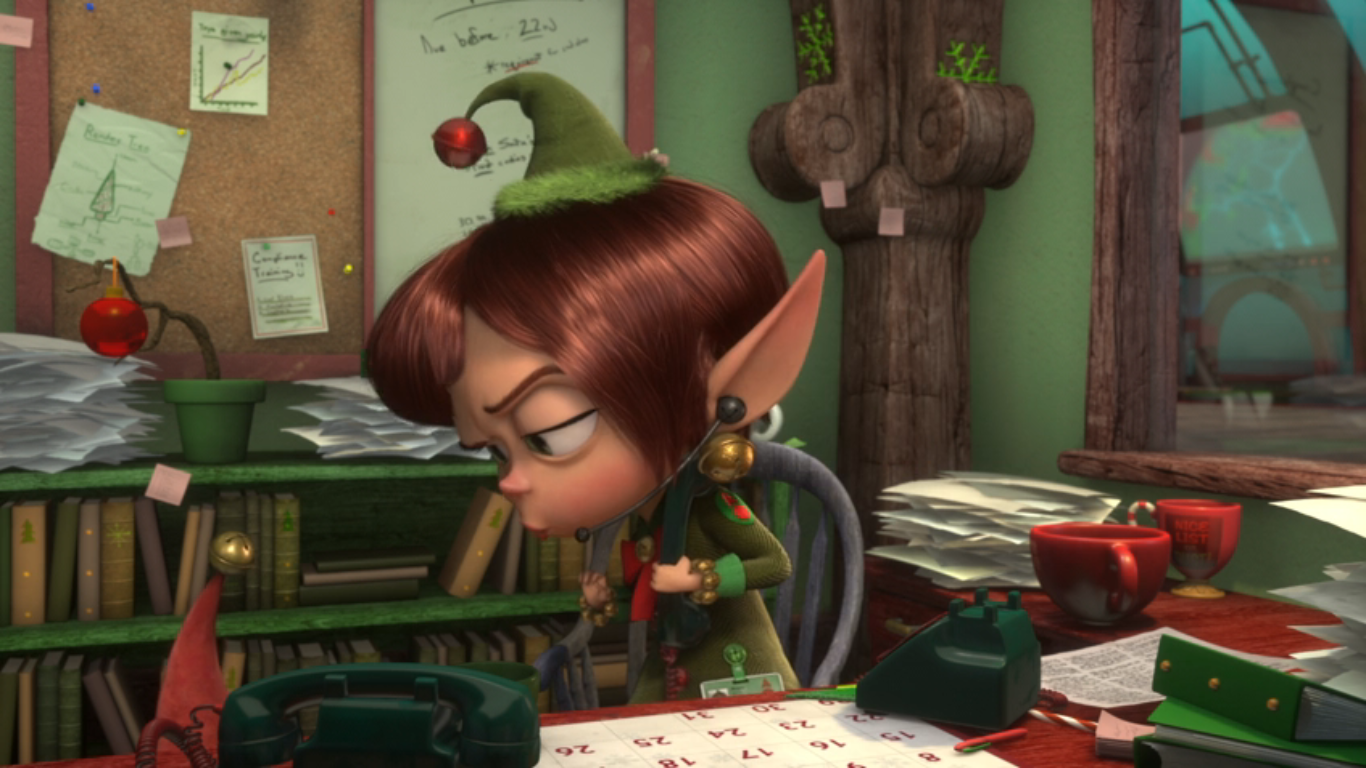 We are taken to the North Pole and a message on the screen alerts us that it is December 22nd, the following year. Magee (Sarah Chalke) is in her office coordinating the lead-up to Christmas and giving Tiny her order for what I assume is eggnog. She grabs the phone to place a call to Mr. Thistleton (Chris Parnell), the elf we saw in the prior scene checking the list twice. He appears to be the head tech elf when it comes to the Naughty and Nice list and coordinating of presents. Magee requests he deliver some good news “baby,” and he responds by calling her “baby” too, but catches himself and immediately seems regretful about it. Hey man, Magee created the hostile work environment first by calling you baby so don’t feel bad about returning with the same.