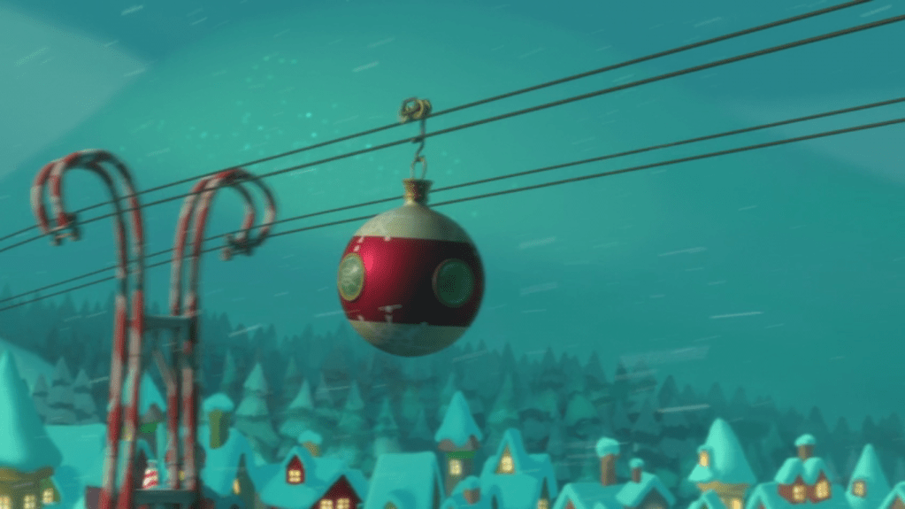 Lanny’s fruitcake then flashes a dire sign: Cranberry Red. He holds it up to Wayne who springs into action ordering the sales elf not to sell the snow mobile as he’ll be right back. We cut to the pair on a gondola as we hear Magee apologizing for pulling them away from their holiday shopping spree. The gondola is basically a Christmas ornament and inside is like a mobile command center. Thistleton is appearing via hologram while Tiny drives. He informs the pair that someone has acquired a fruitcake conduct calculator and is attempting to hack the Naughty List, which they obviously cannot have. The person is known only by their online handle: jinglesmell1337. Lanny seems particularly taken aback by the image of the perp and their disgusting handle. Thistleton tries to humble brag following the disclosure of this information, but Magee ends transmission. Wayne then attempts to cut to the chase as he’s got this figured out: the big guy wants THE Prep & Landing elf to infiltrate the home of jinglesmell1337 and retrieve the stolen fruitcake. He announces that he will indeed undertake this mission, but Magee has some apparent bad news for him. She relays that the big guy does indeed want he and Lanny to get this item back, but also that he thinks they need the help of someone with expertise in the field of naughty children. In other words: a coal elf.