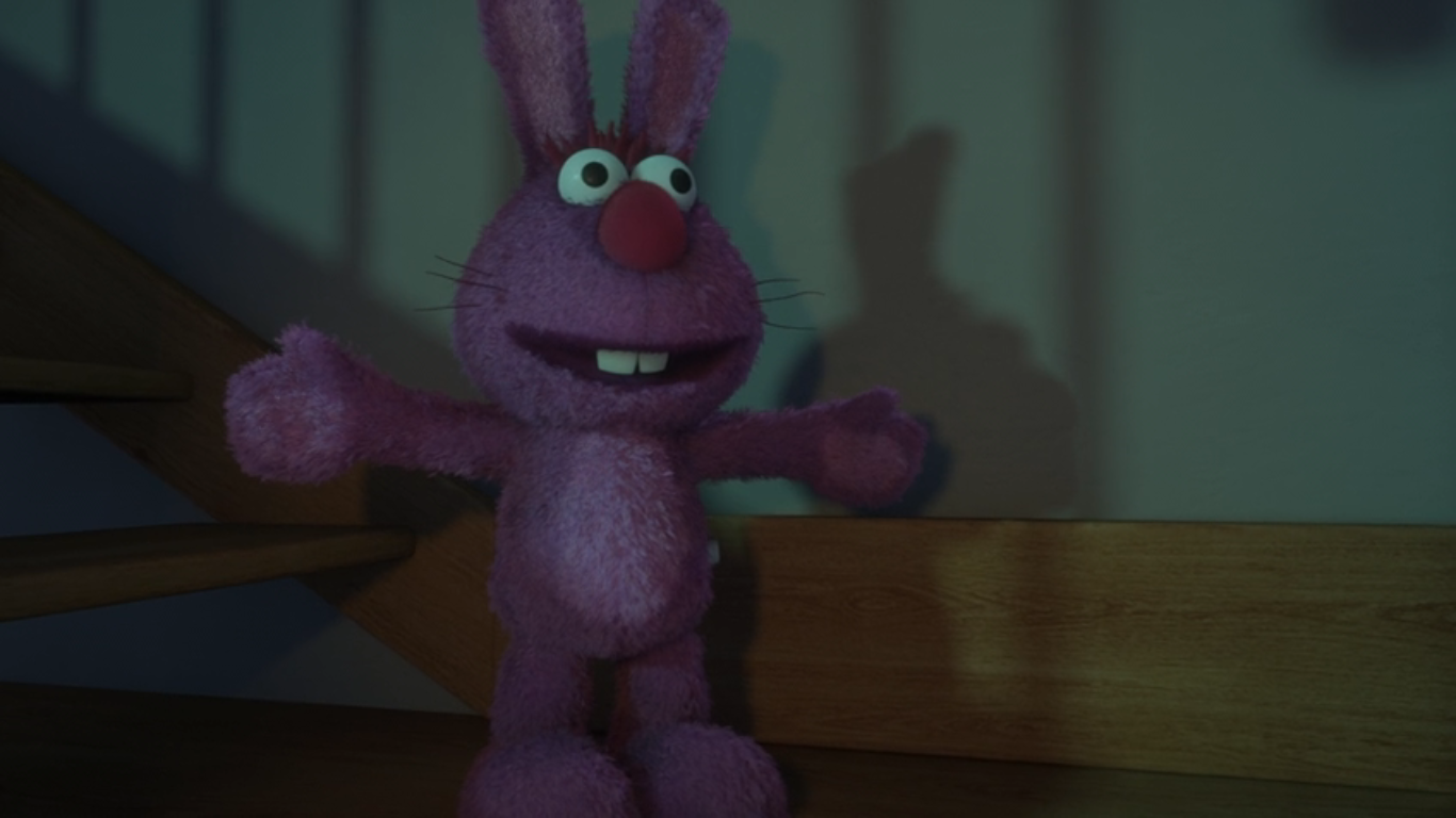 We cut back to jinglesmell1337 as they handle a video game controller. As the brothers reach the top of the stairs, they’re met by a purple, stuffed, bunny with a voice like Elmo. Hop With Me Bunny (Kevin Deters) is just a toy that hops in place and Wayne thinks he’s up to the task. He runs at the doll, but it drop kicks him back into Noel and Lanny. Noel announces that he’s got this, much to the annoyance of brother Wayne. He tackles the toy and puts it in a headlock. Wayne, ever defiant and determined to prove he’s as tough as his brother, tries to join in, but the rabbit kicks him again. Noel then pins it to the floor and with a mighty yell reaches into the beast’s chest to rip out its heart! I mean battery pack. The bar, gunplay, and now this apparent Mortal Kombat style fatality are all possible thanks to creative use of coal, sleep aids, and toys. Wholesome Disney is marketing violence to your kids, parents.