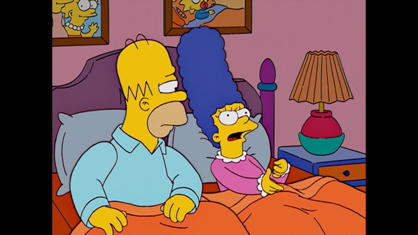 Where do Homer and Marge often settle their disputes? In bed, of course, as we find Homer trying to defend his selfish act. He tries to suggest that she is in fact selfish too for choosing to get her haircut at Supercuts instead of Regular Cuts, the joke being Supercuts is a pretty cheap place to get a haircut. And whoever does Marge’s hair deserves a lot. Marge is obviously not taking the bait and just points out to Homer that Christmas is the time to think of others, but he only cares about himself. He denies this accusation pointing out that he cared what they thought when they found out. She informs him that he can sleep on the couch tonight, but Homer just wants her to yell at him now and get it over with. Marge refuses instead opting to parcel out her anger over the next few days and weeks so she can jab at him when he seems most content. Homer can only groan as he grabs his pillow and flees.