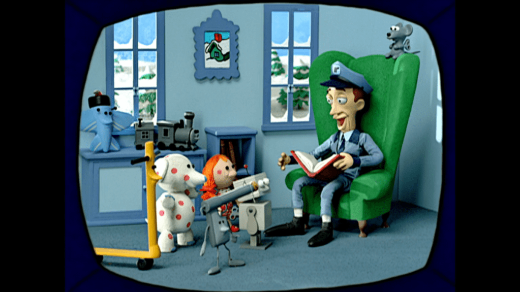 Homer has decided to stay up late watching Christmas specials with his selfish purchase. He’s also opted to unwrap it early as well and even declares that he doesn’t need Marge since he has the astrolabe. It responds to him by telling him that Columbia’s chief export is coffee. On television is The Year Santa Got Lost starring Jimmy Stewart (Castellaneta) as the voice of the mailman. It looks like another claymation piece and the characters all resemble toys from Rudolph the Red Nosed Reindeer, except for the mailman who just looks like a mailman. I guess he’s a nod to Special Delivery from Santa Claus is Comin’ to Town. It’s a very boring story that Jimmy is telling and Homer taps out insisting that Jimmy Stewart as a puppet is just wrong. On the next channel is Mr. Mcgrew’s Christmas Carol, a parody of Mr. Magoo. It’s sort of like the California Prunes from earlier in that this parody is so similar to the thing it’s parodying that it’s almost indistinguishable. Upon stumbling on this, Homer declares he loves that blind, senile, old man! He’s then interrupted by his father knocking on a window in his bathrobe claiming he can’t find his way back to the nursing home. Homer shouts at him, “I heard you the first five times!” then throws his shoe at the window. A bunch of snow falls off the roof and poor Grandpa is buried.