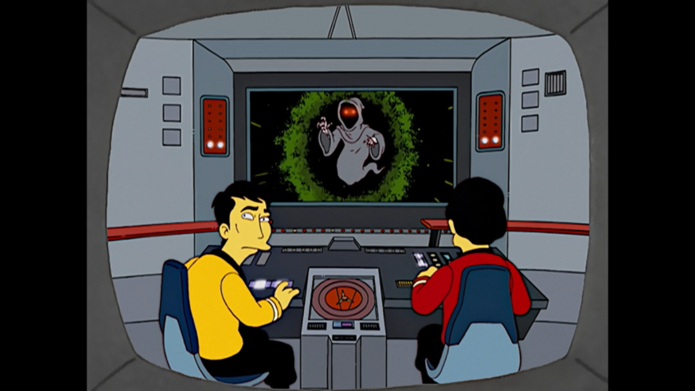 The next morning, Homer is still in the midst of a fretful sleep moaning on the couch “I’ll be good.” Lisa wakes him up with some concern in her voice and Homer just asks her what day is it? She tells him it’s Saturday, December 6h and Homer jumps up saying “Good! There’s still four more days till Christmas!” No one bothers to correct him. We next find the family at breakfast where Homer is talking about the amazing cartoon he watched the night before. He describes it and Lisa has to point out that what he watched was A Christmas Carol by Charles Dickens and that it’s been around for 160 years. Bart points out that television has been mining that thing for decades and he is certainly not wrong. What’s sort of implausible here is that someone who watches as much TV as Homer would be unfamiliar with it. Bart gets to prove his point by turning on the TV (there sure has been a lot of the family watching TV so far in this one) to reveal an Urkel parody and a Star Trek one. Marge thinks the Star Trek one looks pretty good. Homer then announces that TV and nightmares have joined forces to convince him to be a less selfish man. He vows to become the least selfish man in town and Marge reminds him that he’s made this promise before. Homer points out that this time he’s sober…ish. That’s a bit alarming since it’s only breakfast.