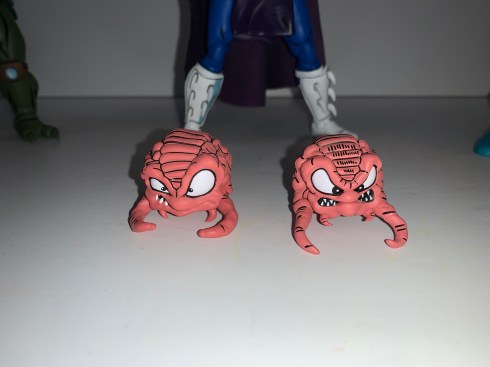 This edition of Shredder has a pretty solid assortment of accessories. I’ve been reviewing this as if it’s a Shredder, but the actual, default, head is Krang. Krang follows the same styling as the one included with Bellybomb only this time he has an angrier expression. Or rather, he’s showing more teeth and his eyes aren’t as asymmetrical as the prior one. His tentacles are on little ball joints so they can move a little bit, but he plugs onto the ball joint like any other portrait would. Which is why it’s a shame that the Krang that came with Bellybomb wasn’t equipped to do the same. Did they not want to tip their hand that this was coming? Maybe, but that’s a silly reason not to do it. It would have been a great way to get multiple portraits for Krang into the mix so it feels like a missed opportunity. Krang is very well painted though and if you’re only going to have one Krang head for a figure at least it’s a good one. You may notice there are no pictures of Shredder with Krang for a head. That’s because once I swapped heads I couldn’t get the Shredder one off. I actually had the whole neck apparatus come out, and since I’m not going to display this figure as Krang, I wasn’t going to go through the trouble of getting this head off.