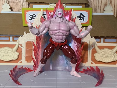 Jiren’s articulation is probably going to be good enough. He’s meant for strong, powerful, poses and he has the capability of pulling off such feats. I wish the diaphragm joint allowed for some rotation. I think their old hinged-ball joint would have made that possible. More so, I’m disappointed in the ankle rockers as he has some pretty small feet relative to his size and not being able to get them flat on a surface in some stances can make keeping the figure upright a challenge. It’s enough though and the combination of sculpt, paint, and articulation makes this a worthwhile release. It wasn’t the re-release I was hoping for, but it’s not one I regret buying. He fits in nicely on my shelf opposite Goku and now I kind of want a proper Dragon Ball Super Frieza to add to the confrontation. It looks like Bandai has taken this listing off of their website as he was available in February as an in-stock item, but that doesn’t mean he sold out. They may be holding back stock for in-person sales at conventions and pop-ups. For that reason, it may not be terribly expensive on the secondary market. If it’s a figure you feel like you need, then I do recommend tracking it down. If it only retails for a small markup then I’d consider it worth it as I don’t think we’re ever going to get another Jiren. What is out there is likely all that ever will be.