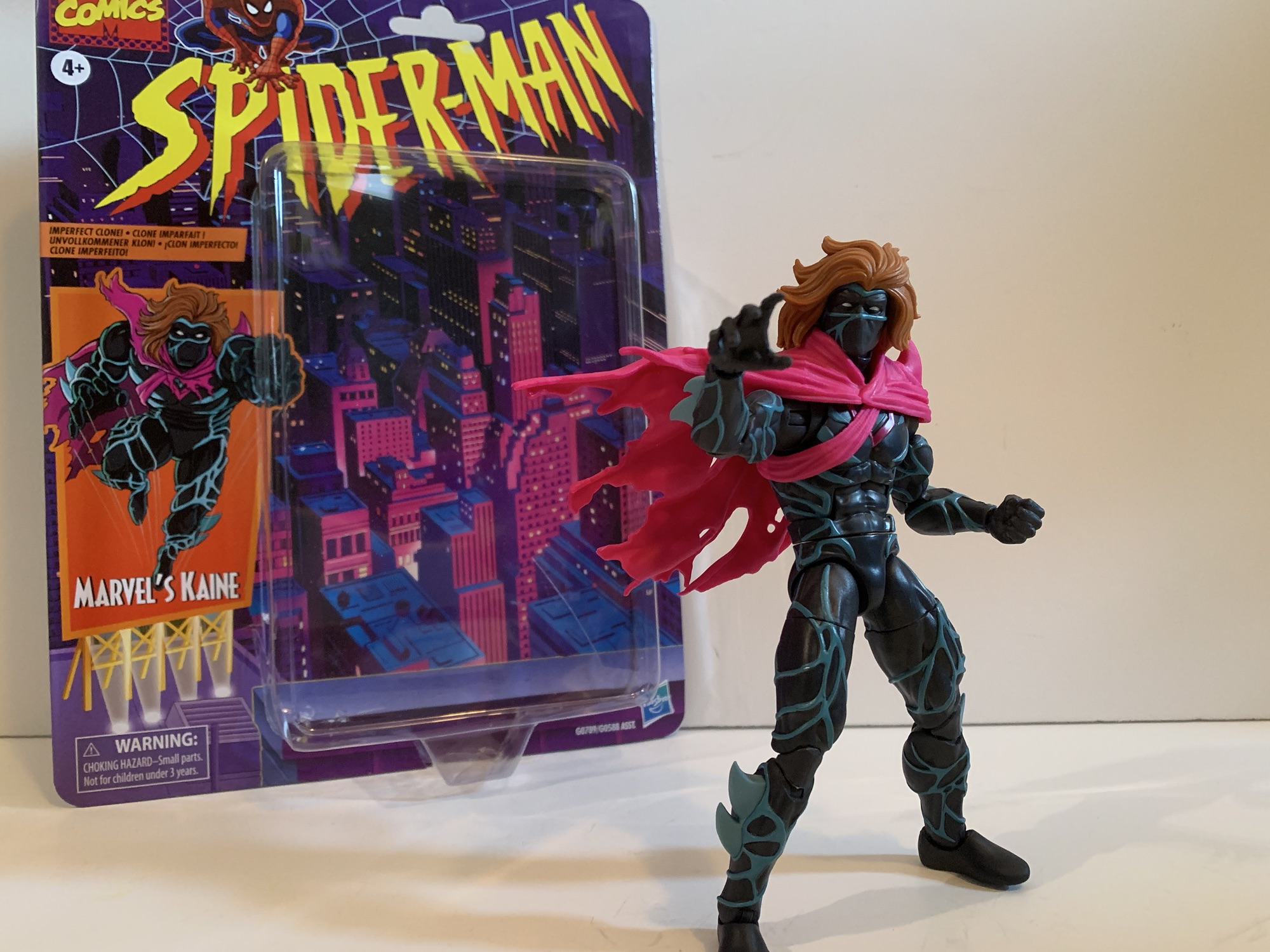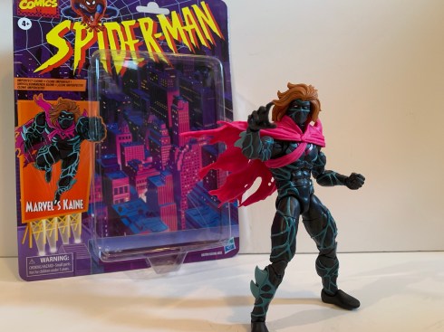 Kaine may have been a lame addition to the story, but if I’m being honest, he did look kind of cool. When Hasbro unveiled a Kaine figure last year, I took one look at it and said to myself, “Why not?” As a Marvel Legends figure, it looked interesting and the crazy pricing we’re seeing from the world of action figures makes these $25 ones feel more susceptible to impulse buying now. Kaine comes in the retro Spider-Man packaging which makes sense given his era. He never did get a single card release in that line, so I guess this is like making up for lost time. There was a Maximum Clonage box set that contained a Kaine figure that was probably exclusive to some store. It was a classic Toy Biz repaint and I think they used an Archangel body for the base and just slapped a cape on it. Maybe if he had made the jump to the actual show he would have been given a more prominent release, but honestly it’s all Kaine really deserved.