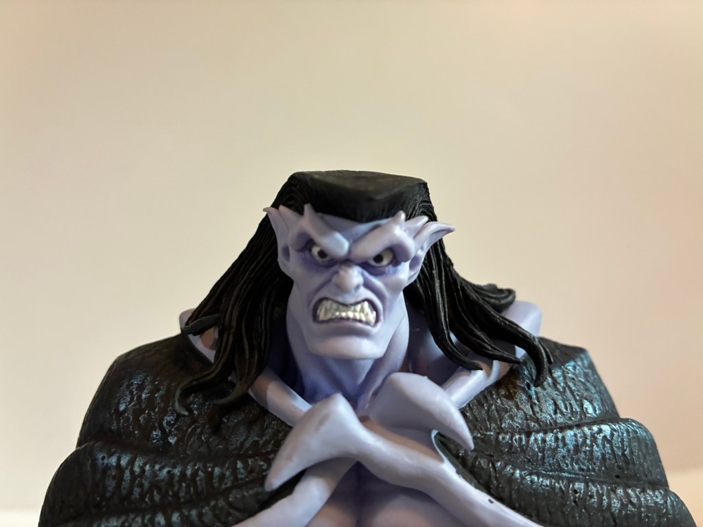 It’s been awhile since I last took a look at a Gargoyles release from NECA and there’s a good reason for that. While I was super pumped when NECA announced it had acquired the license for Gargoyles back in 2021, I found the figures to be a case of diminishing returns. Goliath, the first figure released, was promising, but had some notable flaws. The flaws would then be shared by just about every figure to follow and while fans practically begged NECA to address the main issue, the company failed to do so. Instead, it quietly cancelled the line after releasing over a dozen characters and a few variants. What was that issue? Wings. Big, honkin’, wings. These things came packaged with their wings spread wide open sucking up tremendous shelf space. The only solution NECA came up with was to include the caped or folded wings with other releases. To get Goliath’s, you had to get Bronx. Brooklyn’s came with Elisa while Demona’s were packaged with Xanatos. If you wanted Broadway’s you had to re-buy Broadway in his detective guise and if you wanted the same for Angela, Hudson, or Thailog, well – you were just plain out of luck as none of them received the wings they were looking for.