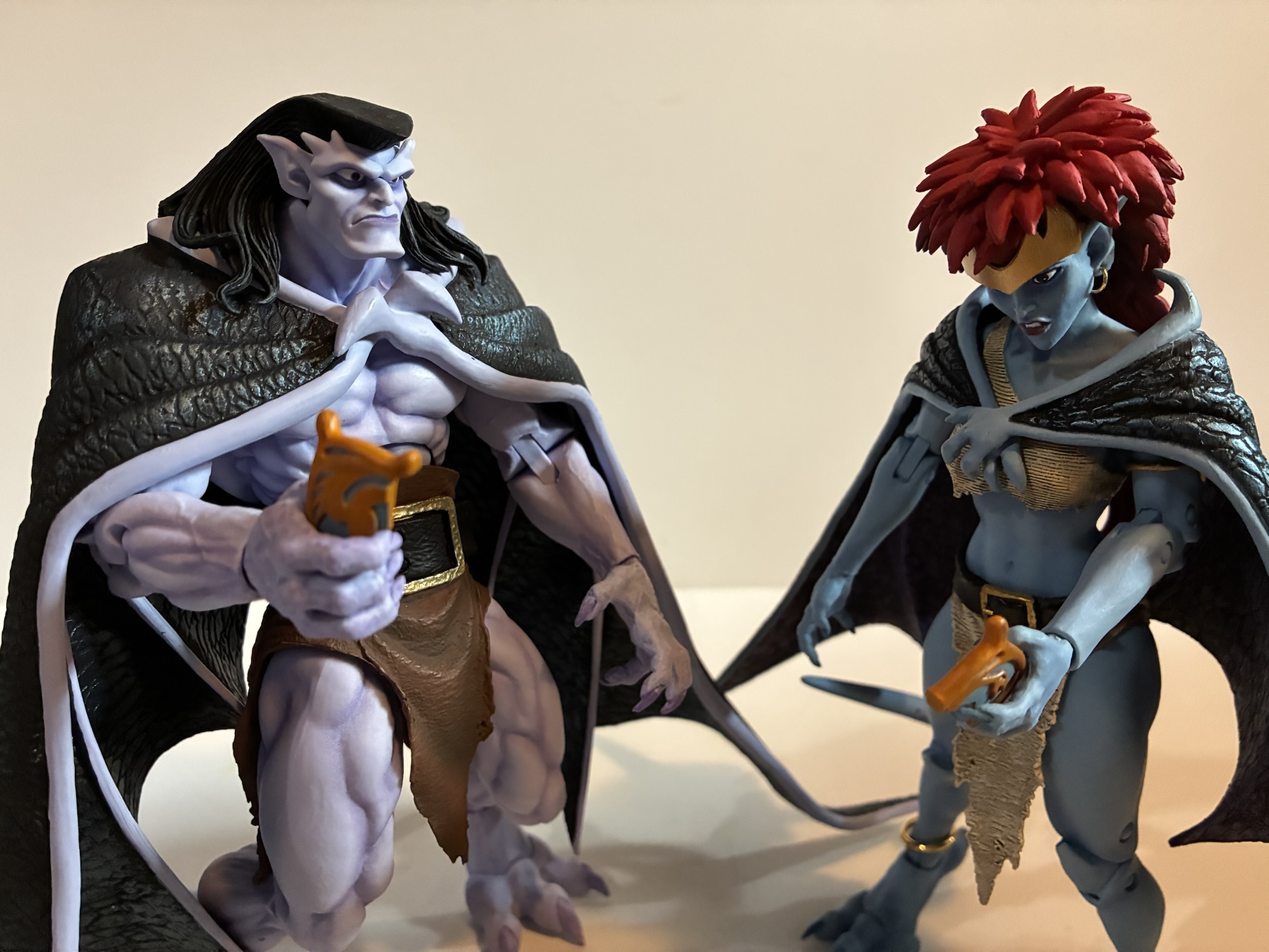 Should you buy this set? No, probably not. If you have been admiring the line from afar and want to try and get into it before it disappears forever, then I guess, yeah, this is probably preferable to buying the figures individually. It’s $70 and Demona alone costs $36 while Goliath was $32, I want to say. I think NECA charged a little less with him on purpose to lure fans in. Right now on Big Bad Toy Store, you can get Goliath for $26 and Demona for $42. They also have the Vows set, but priced at $80 which is crazy. If that set came with both sets of wings then I could see going for that, but you can also find it cheaper. It mostly comes down to preference. If you prefer these caped wings then definitely go Vows. If you like the big, open, dramatic wings then get the individual releases. You’ll get more expressions with this set though. For Goliath, I don’t think anyone is really missing the book and jalapeno pepper, though the first Demona had two guns that turned out pretty nice plus her grimoire. She’s a bit more of a toss-up. Wouldn’t it have been nice if NECA just made this two-pack the ultimate release of both characters like the box suggests? There’s a balancing act to doing reissues like this where you want to put enough new in the box to entice existing customers, but also make it a good jumping on point for newcomers. I don’t think NECA satisfied either group here which seems like a shorthand way to describe the Gargoyles line in general – so close to being great, but oh so painfully short.