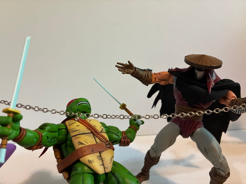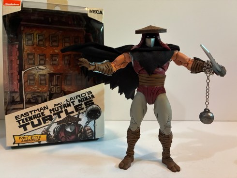 This is a solid figure that’s so close to being a great figure. The missing waist articulation is more of an annoyance for me than the wrists and I don’t know why NECA didn’t put that in. If he had that he’d move pretty damn well. I think much of this figure is utilized for the new Shredder currently available in a two-pack. I don’t know if that one has waist articulation and I don’t plan on finding out until it’s available as a single-packed figure (or it hits deep discount). And for an assassin, I do think this guy should have some kind of a ranged weapon. The sword with the ball and chain is pretty cool, but doesn’t seem very practical for an assassin. He looks cool though and isn’t a total stiff so if this is something you’re interested in based on the look of it you’ll probably be content. I found this guy at Target where it only set me back $35. He’ll probably be available in various other places eventually if he’s not already, though probably at a small markup.
