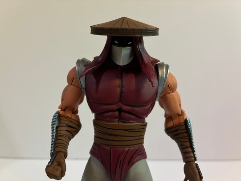 The paint is fairly simple, but clean, and has the usual NECA comic embellishments. There’s a lot of linework the emphasize the muscles and to outline all of the wraps. There it’s remarkably clean though if you get in close you’re likely to find some places where the linework doesn’t precisely match the carved-out groove. The faceguard is a nice, metallic, silver and the forearm armor contains a hit of light blue shading at the edges to create the illusion of a metallic surface. It’s a nice effect and so simple which makes it a shame that other companies don’t do the same with their figures often opting to just use bare, gray, plastic for metal parts. I do very much like the proportions on this guy so a tip of the hat to sculptor Gurjeet Singh. Nicole Falk is also credited, though I see her name most often credited with “fabrication” which makes me think she handled the cloak, which is also well-tailored and looks fabulous. Geoffrey Trapp and Mike Puzzo handled the paint for this guy.