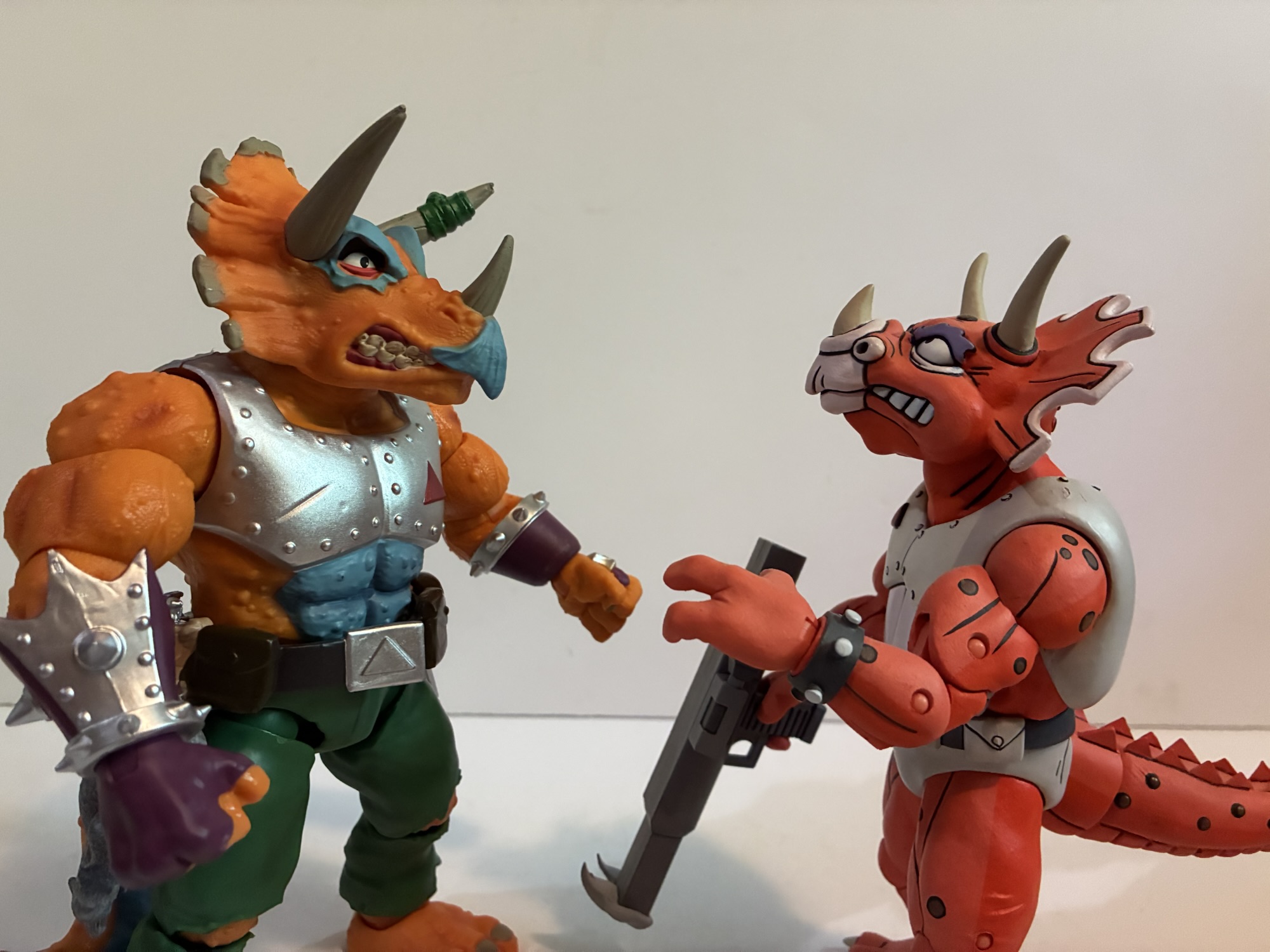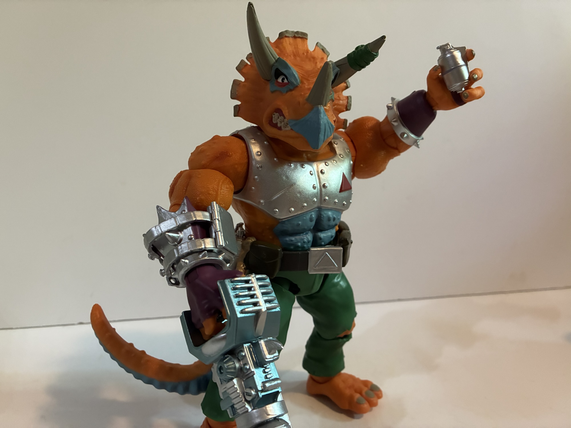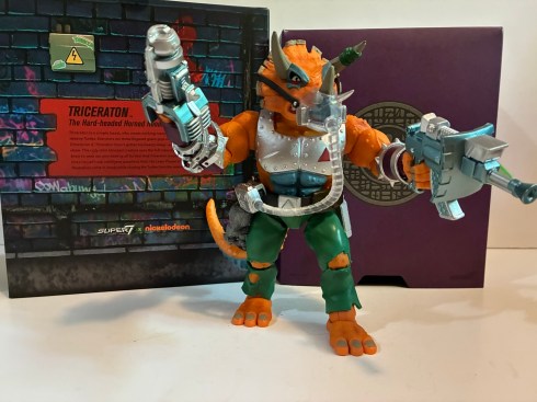 And that’s why I refused to pay full price for Super7’s Triceraton. There’s a lot I like about this figure and a lot that just drives me crazy. It’s a very good microcosm of the Super7 experience: it’s big, it looks good, it moves like shit, and costs too damn much. For $55, I obviously can’t recommend it which is why I didn’t buy it. For $32, which is what I paid for it, I think it’s acceptable. I have a big, orange, dinosaur that’s going to look cool in my TMNT collection and it only cost 2 dollars more than those silly vintage style figures Super7 does. He’s not going to be fun to play with and pose, but at least he has enough stuff that he can have his look changed up to some degree (though I’m probably going to just keep everything on him). And for $32 I think that’s good enough, but only just barely. I got mine from Big Bad Toy Store where the figure is still priced at $32 so if you want him, go get him.