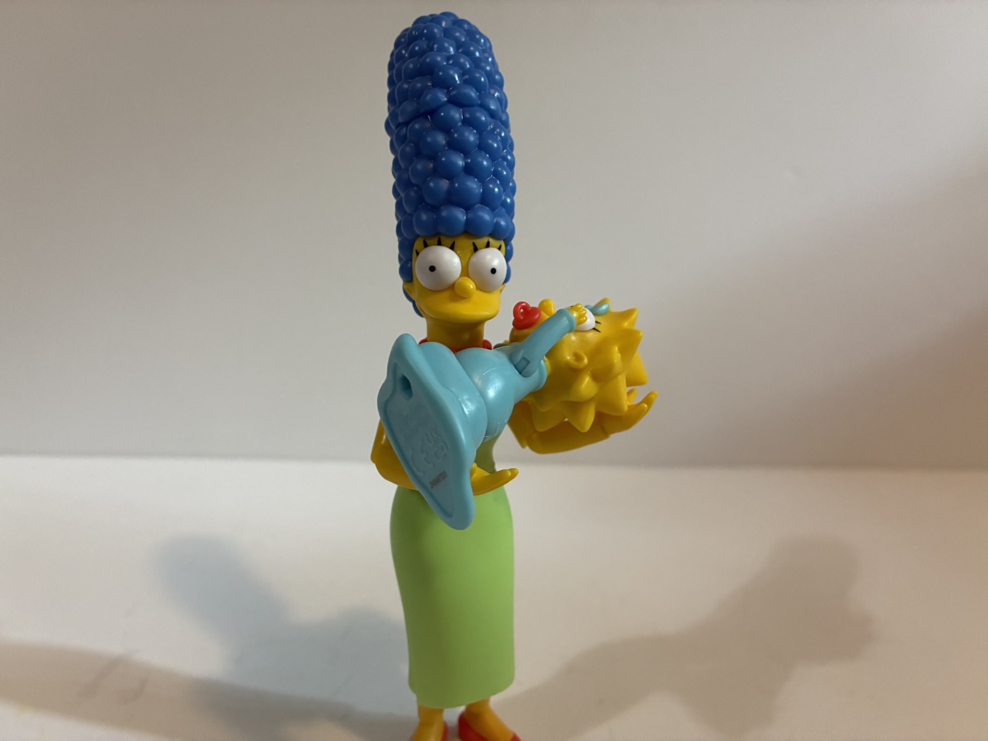 And if you’re saying to yourself, “Hey! What about Maggie?” – don’t worry, for she is Marge’s lone accessory. Yeah, it kind of stinks that Marge doesn’t come with something fun like a potato or toxic drinking water, but it’s definitely great that we got Maggie. She’s in her blue onesie with her trusty pacifier in place. Jakks gave her articulation at the head, shoulders, and waist which is basically a ball joint that lets her rotate and pivot. The only issue with Maggie is the same as the rest of the kids: she’s way out of scale with the adults. Her head is the same size as Marge’s and she looks ridiculous in Marge’s arms, if you can get her to stand while holding Maggie. Since she basically is an accessory she doesn’t actually come with any. It might have been a better release model if Jakks gave Marge some accessories and sold Maggie with the Simpson pets as a three pack, but hey, at least we have the whole family.