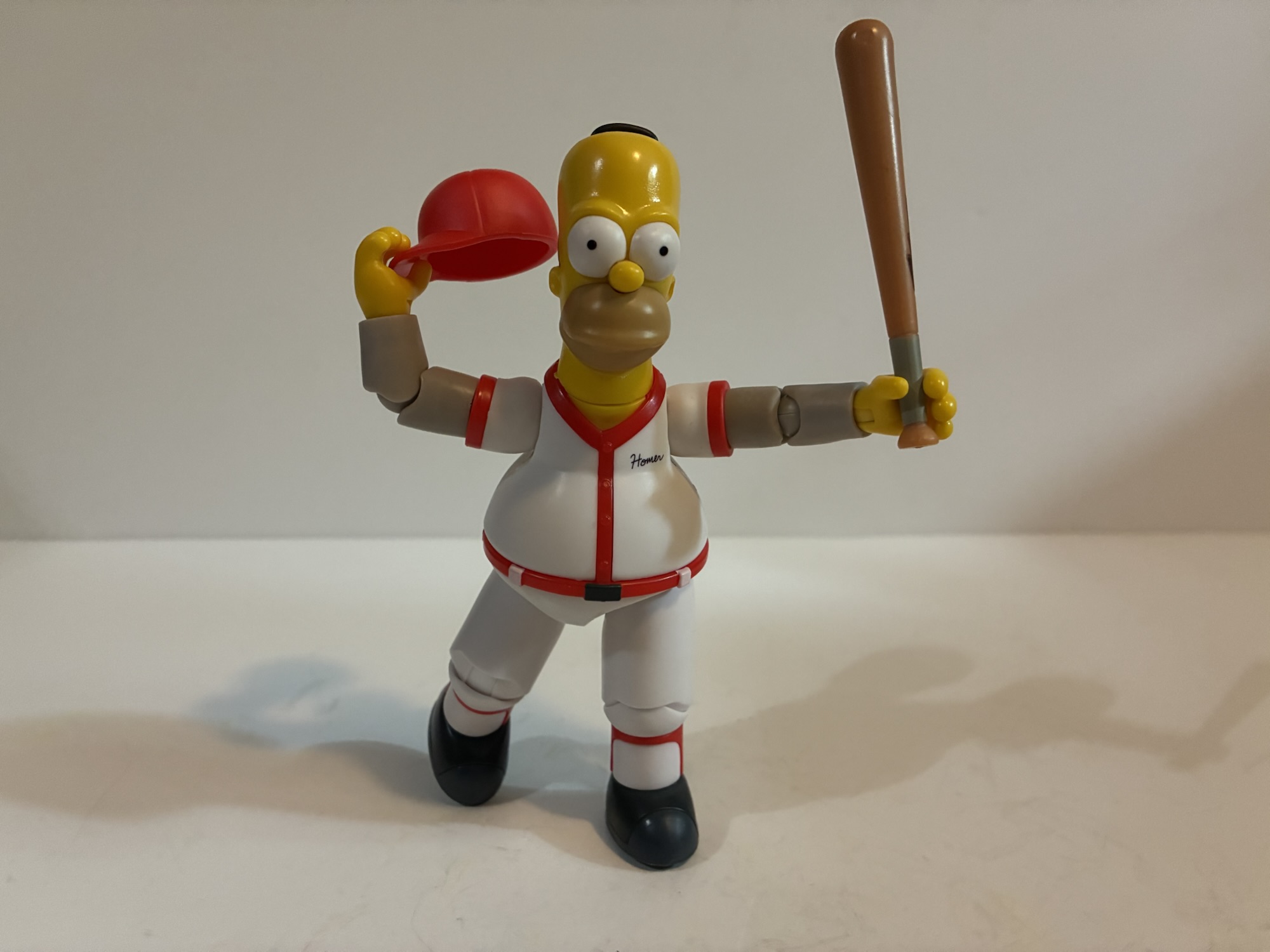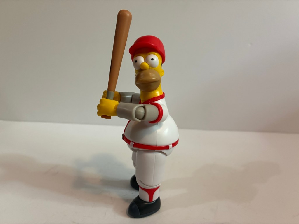 The Homer variant of Wave 3 is Home Run Homer from the iconic episode “Homer at the Bat.” That’s the one where Homer joins the Nuclear Power softball league with his trusty Wonder Bat. Homer is basically the same head as the first wave Homer with a body clad in his softball uniform. The body is mostly new since the uniform requires red piping which Jakks did with plastic instead of paint. I think the only paint might be his name on the chest, the white belt loops, black belt buckle, and gray spikes on the bottoms of his cleats. For accessories, Homer has a removable hat and good old Wonder Bat. He looks really nice, though the hat is quite large on his head making me question the decision to make it removable and not just part of the sculpt. The real downer though is Homer’s inability to hold his bat with two hands. Solicitation images implied this was possible, but they lied. He also lacks a vertical hinge for his wrists so he can’t call his shot. I would have preferred better articulation and a new expression as well. Still, as a representative from one of my personal favorite episodes, I can’t not like this one.