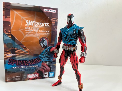 When Scarlet Spider showed up in the movie Across the Spider-Verse I immediately wanted a figure of that look. The art designer (Kris Anka is credited as the character designer) for that film clearly knew what made the costume pop as he was depicted with heavy comic shading in every scene he appeared in. Hasbro, unfortunately, declined to include him in their companion action figure line, but they did release the character on a retro card later. Medicom did one and then even did a shaded one last year as a convention exclusive, but the shading was basically just a little black on his face. It wasn’t what we saw on film or in the comics, but here comes Bandai! Bandai has released a few figures in its S.H.Figuarts line based on the movie, but for some reason I never considered them a possibility for this look. They’re usually not really into painting their figures while Medicom has actually done comic shaded figures of Spider-Man in the past. When they showed this one off though I knew I had to have it. I even preordered it via Hobby-Genki, an import operation in Japan, rather than wait for one of the US stores to get the figure in. And, of course, because of those wonderful tariffs it ended up costing me about the same so while I didn’t save any real money, I did get the figure a little quicker.