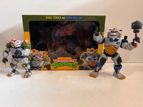 These robotic versions of Tokka and Rahzar from Sylvain Plantier and NECA are probably what you would expect of them. The design is terrific and the sculpt and paint really bring them to life. The size and aesthetics mean they don’t slot into your vintage toy collection, but they look right at home in a NECA toon display despite never appearing in the show. I do wish we got some effect parts, but I do wonder if that’s something Nickelodeon frowns upon. It seems JoyToy can get away with such, but maybe not toys for the US market? The articulation is what it is. I don’t think anyone expects much out of NECA in that regard and at this stage of the toy line’s life it’s not something that’s going to change. If you like the design then that’s what you should base your purchasing decision on. And as for that decision, the unique tooling in place here certainly seems to have impacted the price tag. These guys are exclusive to Target in the US where they retail for $70. This two-pack is more expensive than the movie versions two-pack. These are basically priced like two NECA Ultimates, or something a little lesser since those seem to be trending towards the $40 mark. Gone are the days of the $52 two-pack, especially when it’s a set that doesn’t feature much opportunity for parts reuse. I’m not going to tell you how to spend your money, but we’re definitely at that point where I’m passing on sets because of the price. At $52 I was willing to buy just about anything, but at $70 I’m definitely selective which is why I never reviewed the Creepy Eddie and Shibano-Sama two-pack – they just didn’t seem worth it to me. This set did because I really like the designs and I think it works well for the line. Who knows what will come next for me with this line as we don’t have much confirmed past this. Each turtle is getting a unique disguise later this year and there may be a Tempestra coming, though the figure was not on display at New York Yor Fair for some reason. And then there’s the question of whether or not the line continues past 2026? The San Diego exclusive is already out and available for purchase and it’s just a black and white set of the 2012 turtles with an accessory pack. I don’t need another set of those and if the toon line is coming to an end then at least I can look forward to saving some money!