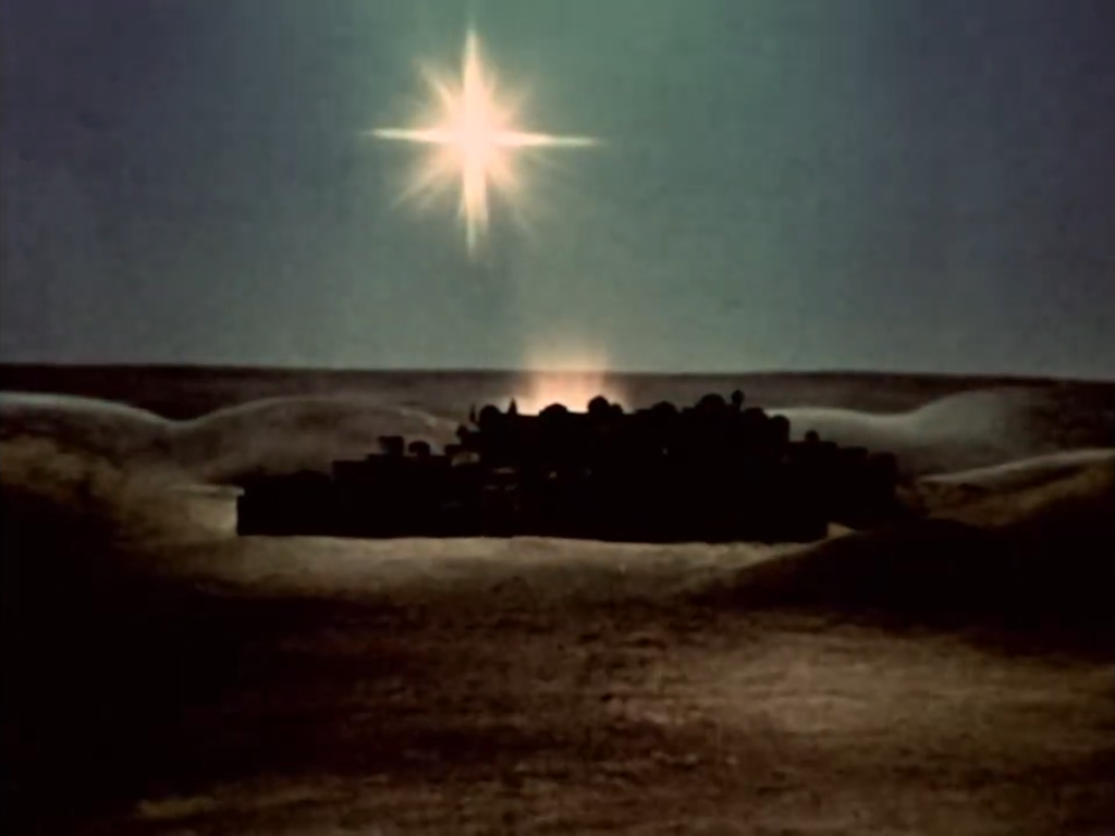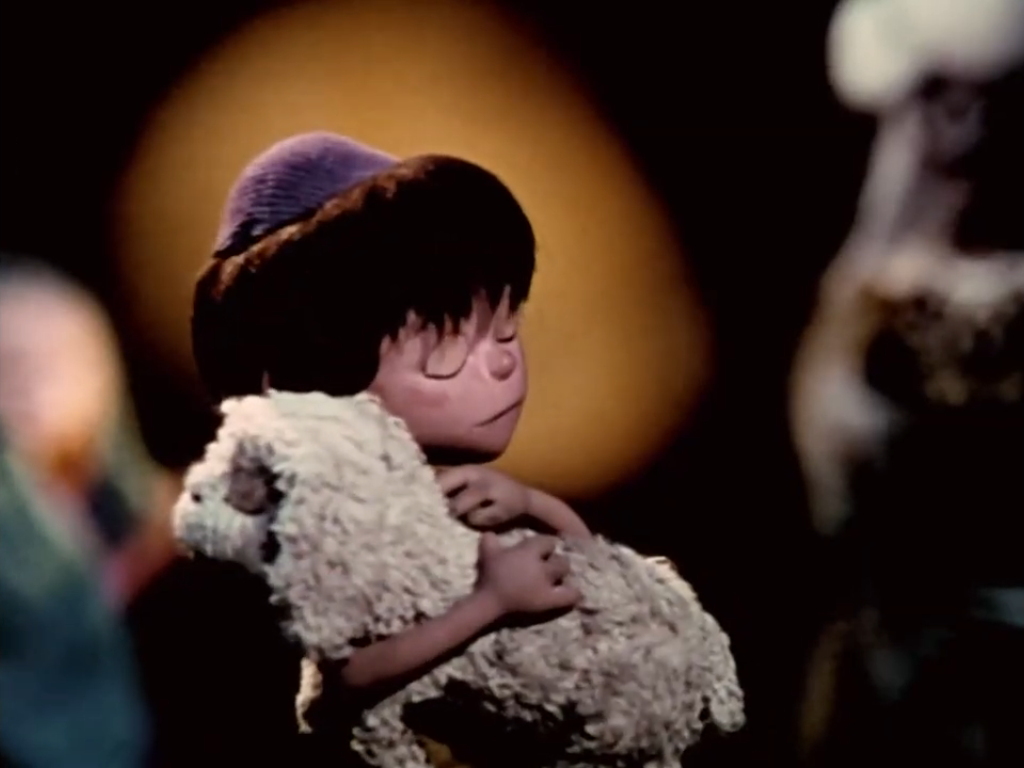 Aaron’s gift of song pleased the child and when he turns around he finds Baba alive and well. He embraces the little lamb as Casper explains that his gift, born of desperation, is the greatest gift of all. That sounds kind of weird, but we’ll go with it. Aaron sheds some happy tears and our narrator tells us that this act allowed him to let go of his hate and we’re left to assume that Aaron was a much happier child from then on. And assume we must because it’s over. The camera pans up to the star in the sky and that’s the shot it goes out on.
