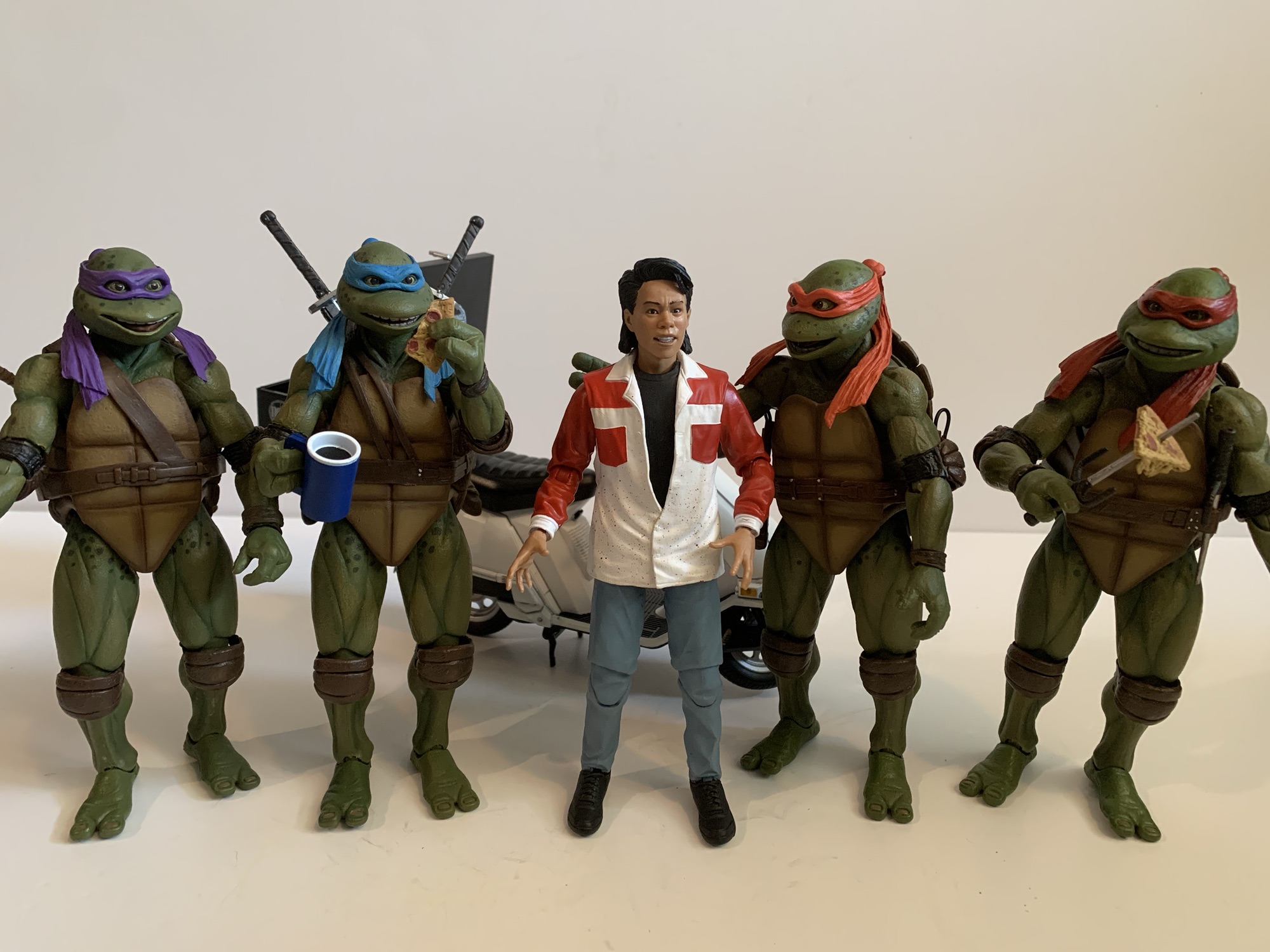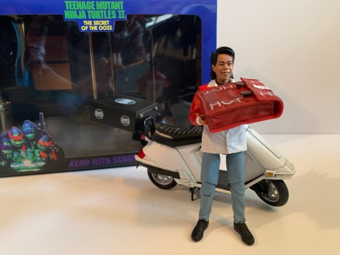 It was a little less than two years ago that NECA unveiled not one, but two, Teenage Mutant Ninja Turtles exclusive items for San Diego Comic Con. One of those, the four pack of turtles from the movie Teenage Mutant Ninja Turtles III, I purchased and reviewed in this space as I often do. The other, the first ever action figure of Ernie Reyes Jr. as Keno from the movie Teenage Mutant Ninja Turtles II: The Secret of the Ooze, I passed on. Not because I disliked the release or was limiting myself to only one item, but because NECA wanted 100 bucks for it. I have said in this space before that I do not like the second movie in the TMNT film franchise. I found it enjoyable as a kid, but it’s a bad movie. Reyes Jr. gives a fine performance as Keno and he’s not the reason the movie is bad, it’s a lot of things. Still, I was interested in adding a Keno to my figure shelf because he was a part of it and a part of my childhood. And if I was going to add a Keno, a Keno from the beginning of the movie where he’s delivering pizzas is my ideal Keno. I’m just not willing to spend 100 bucks on it.