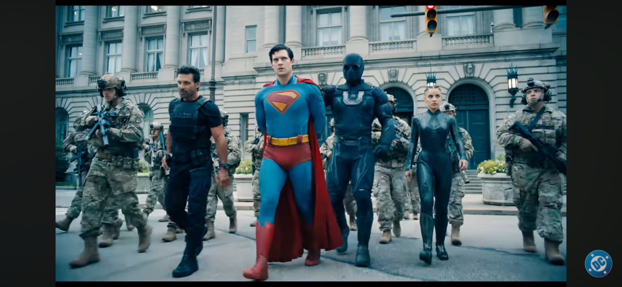 Superman (played by David Corenswet) opens at an interesting time for the character: his first defeat. Some text overlay is present to inform the audience that Superman has been on this world for 30 years and revealed himself to the public 3 years prior to the events of the movie. This is not an origin story, though if you know nothing about Superman going into it you’ll have the gaps filled in enough without a lot of direct exposition. Superman also gets to open the film in a Yamcha pose. If you are a Dragon Ball Z fan then you know what I am referring to as the character is laying in a fetal position in a crater in the arctic. If you saw the first trailer then you saw this scene. It’s an interesting way to introduce the audience to the character as it informs us that this is a Superman who can feel and experience pain. Some takes on the character make him basically invulnerable to all things not Kryptonite. This Superman is indeed a super-powered individual and no mortal man could ever hope to best him at any physical test, but other super-powered beings can perhaps stand a chance.