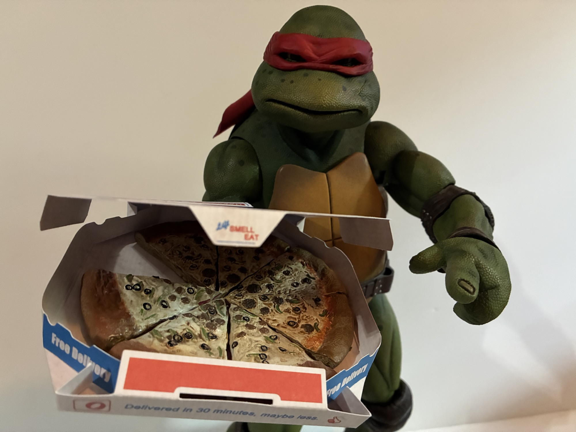 To summarize, we have a figure of Keno with a sloppy paint job and iffy likeness with at least one of the heads. He comes with an out of scale pizza box, but at least it can be hidden in the pizza warmer thing. He also has a scooter that looks great, but doesn’t really work with the figure. And this package will set you back 60 bucks. Is it worth it? On the surface, a 1:10 scale action figure and vehicle combo at 60 bucks is a pretty good deal. There are not a lot of figure and vehicles out there in this scale for cheaper. On the other hand, it’s an imperfect figure that doesn’t work well with said vehicle. And it’s a part of NECA’s movie subline of Teenage Mutant Ninja Turtles which actually has a pretty sterling reputation. These are some of the best figures NECA has ever done, but unfortunately, Keno lowers that bar. He doesn’t lower it as much as Danny did, but he’s not the equal of the turtles or even the other Keno which I enjoyed quite a bit. This is an underwhelming release and I’m glad I didn’t pay 100 bucks for it in 2023 because then I might have been kind of pissed. Now I’m just disappointed. I like that I have a Roy’s Pizza Keno in my collection, but that’s where my enthusiasm ends. If you want to pick this up and sort out your own feelings on the subject, Keno is currently exclusive to Walmart like most of the movie collection. As of this writing it is still in stock on Walmart’s website (fulfilled by NECA) and I assume it will start showing up in stores as well.