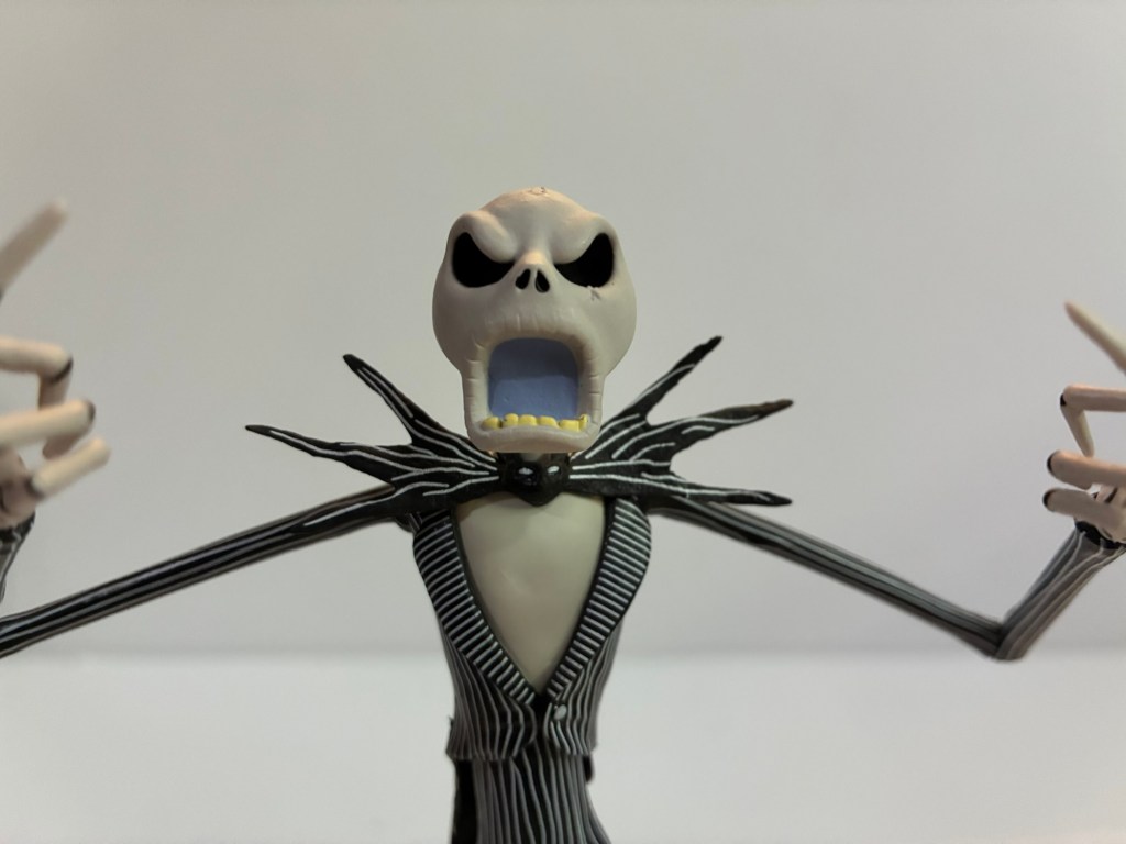 With the Halloween season upon us it felt like a good time to take a look at a figure that I’ve had in my possession for a little while now: NECA’s Ultimate Jack Skellington. NECA released action figures based on The Nightmare Before Christmas many years back, but in 2024 the company decided to return to the franchise with some all new sculpts. There isn’t much shortage for merch based on the film these days, but NECA felt like it had something to say where the characters are concerned. Those old toys were okay for their time, but could use an update. Super7, Diamond Select, Beast Kingdom, and more have all tried to put their stamp on the franchise as well in recent years to varying degrees of success and failure. NECA, always being more of a horror brand when not making Teenage Mutant Ninja Turtles, must have felt like it could top them all and they may have done just that.