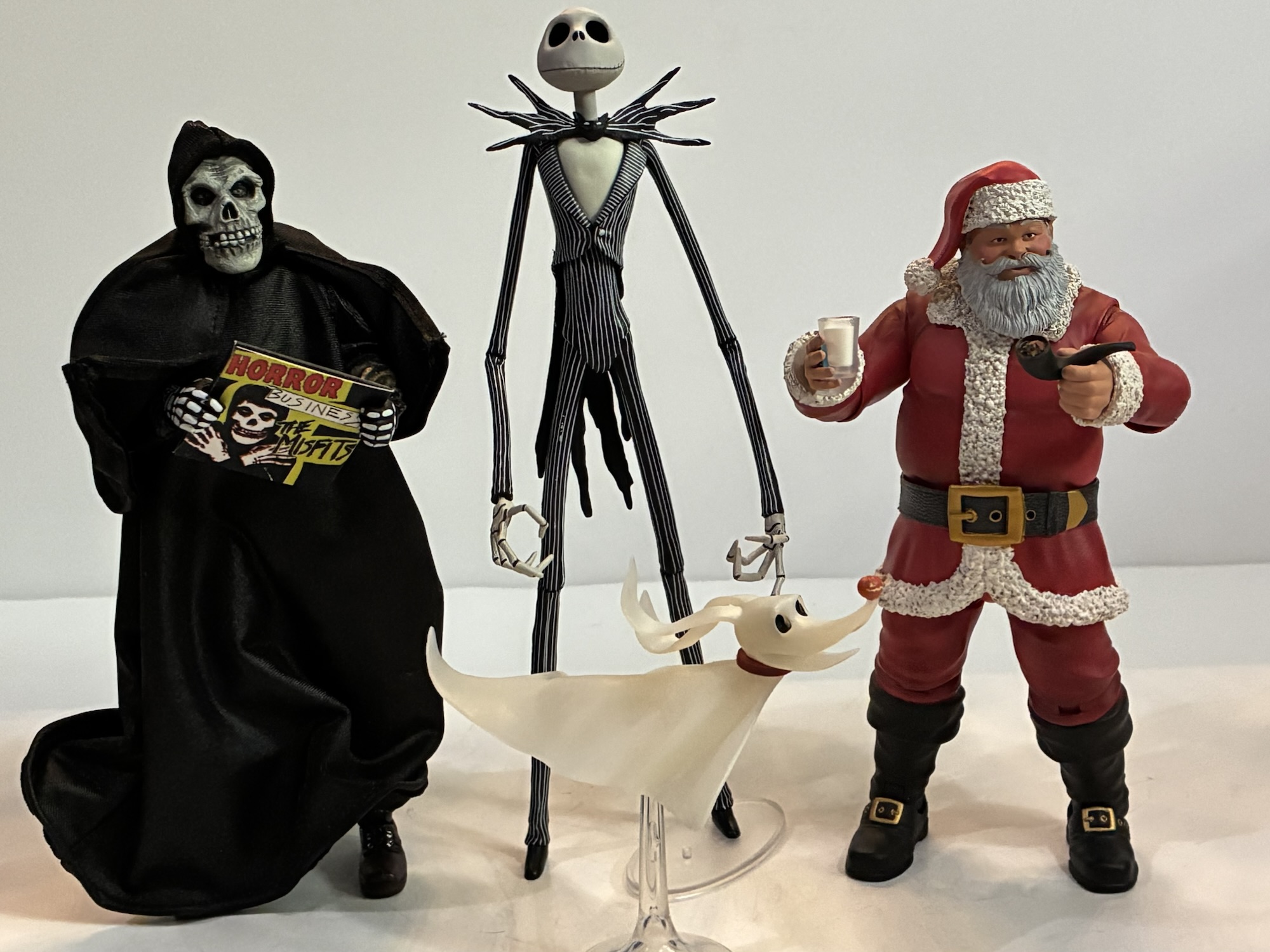 If you have ever wanted an action figure of Jack Skellington then I think you’ll be very happy with this NECA figure. NECA captured the look and personality of the character to near perfection. If it can be helped, I just recommend finding him in store where you can cherry pick the best paint job available and mind those lines. I was caught up in making sure the heads looked as pristine as possible and didn’t even look at the legs, not that I should have to, but I wish I had. Otherwise, I love the look of this one and he looks like a puppet from the film. You could probably substitute this figure into a shot of the movie without anyone noticing. Getting Zero included is a great perk while the other accessories help for a festive, Halloween, display. And if you want to leave him up all the way through Christmas then you’re more than welcome to, though NECA also has a solution there as well.