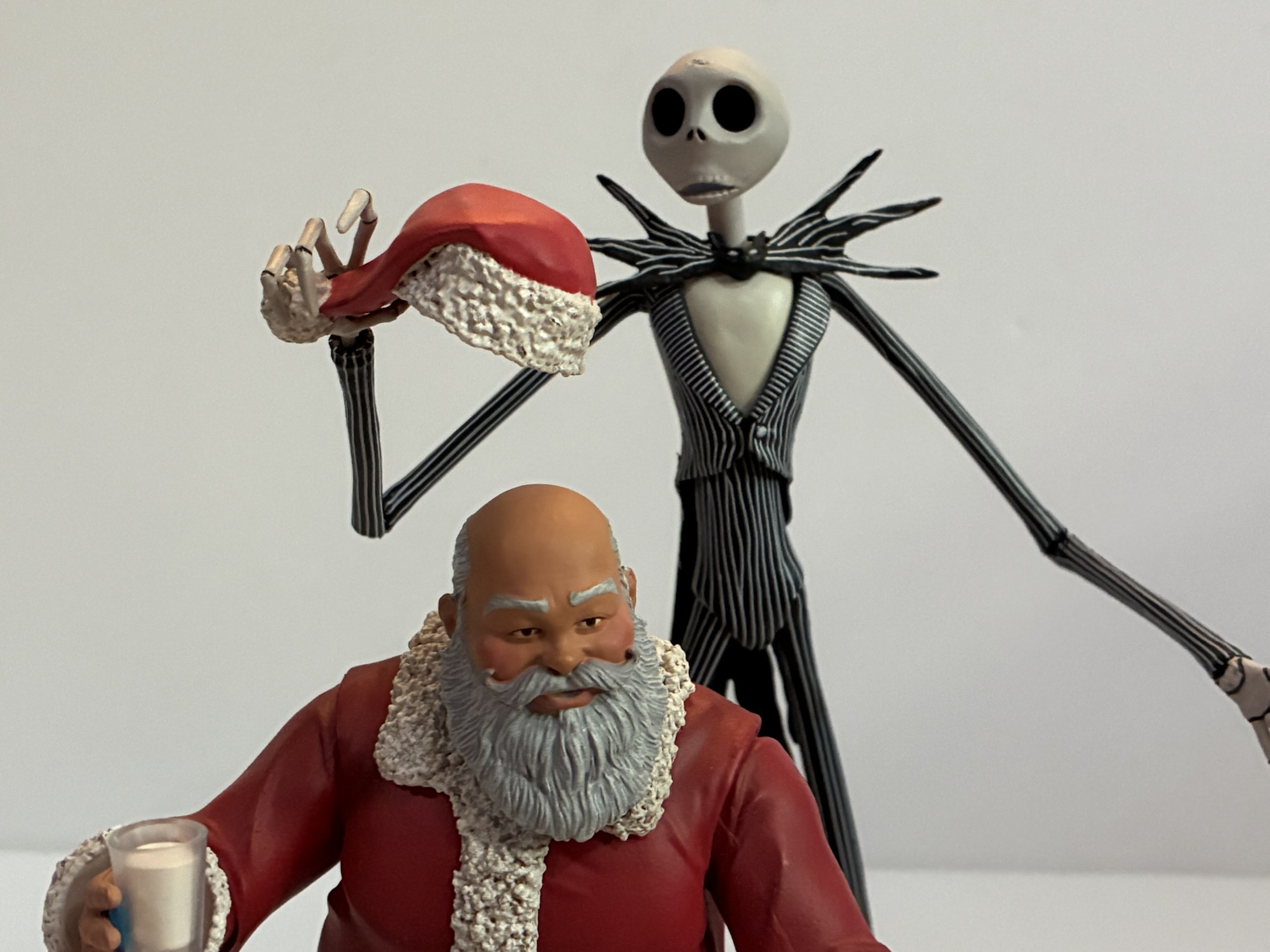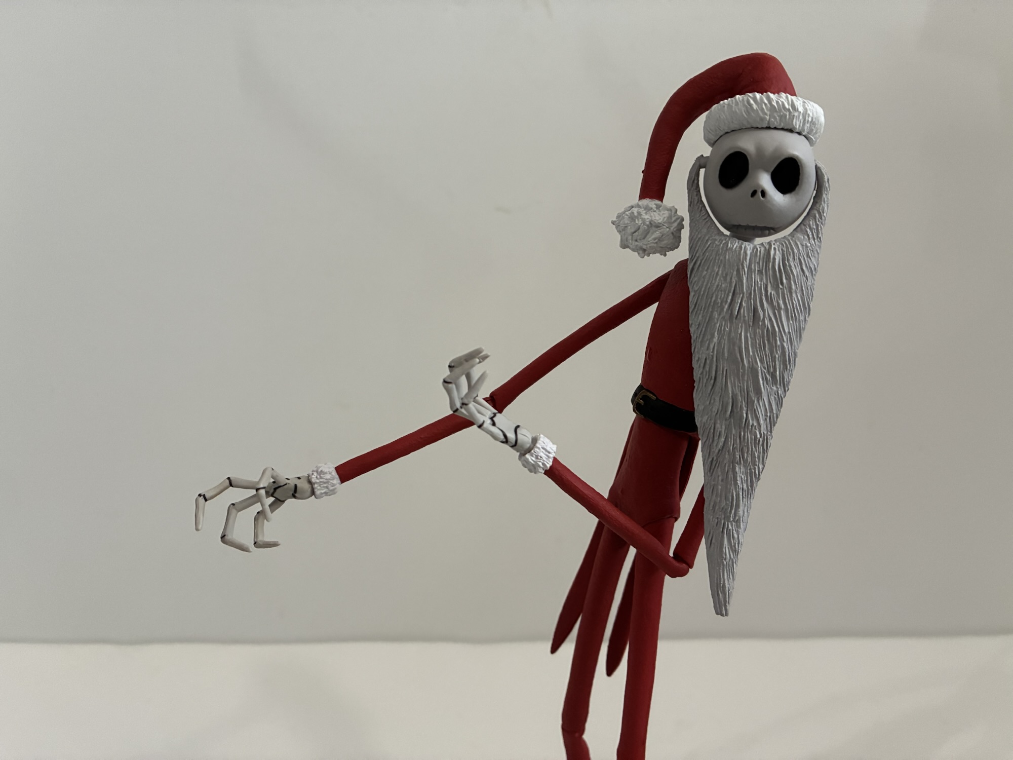 The articulation for Santa Jack is exactly the same as it was for the standard Jack (linked at the end of this post). The only difference is we now have the hat and beard. The beard, since it just pegs into each side of the face, can swivel forward and back which helps a little with adjustment posing. The hat is a double ball peg so it can rotate, but also slide around a bit to be posed at slightly different angles. It’s a nice touch and obviously the only downside here is it means the hat isn’t usable with the standard Jack heads. I do wish NECA had found a solution there. A magnet makes the most sense, but maybe they couldn’t get one into the heads without putting an ugly seam on the top. It also wouldn’t solve the beard issue. If the beard could have just pressure fit to the heads somehow that would have been great, but probably tough to get right. Even something like sunglasses on a figure or the faceguard on the movie Shredder still has tabs to click onto and there’s just no way to do such here without making them visible. Or we could have just got more heads like we did with the regular Jack. I’d have loved more expressions, but it wasn’t in the cards here.