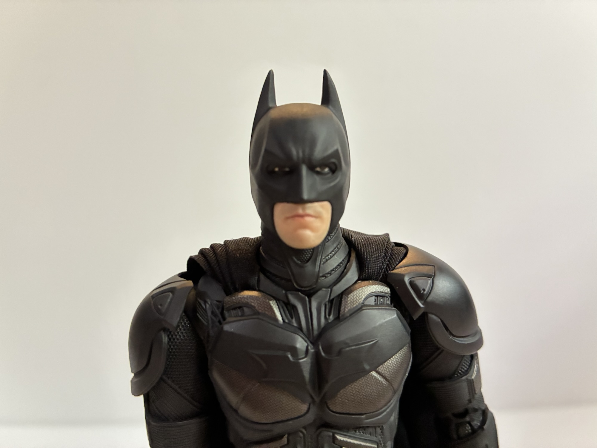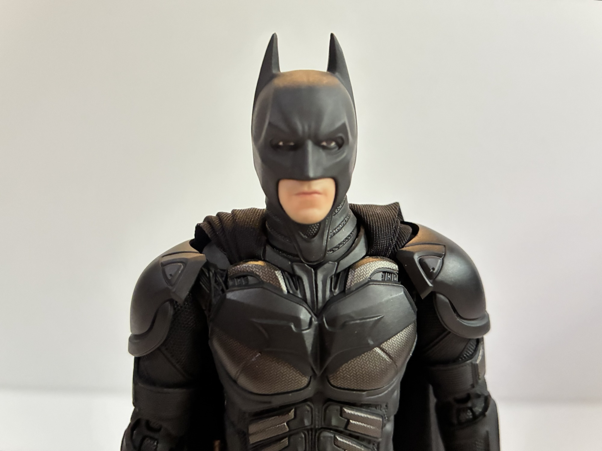When I parted with that Batman I never intended to replace it with a similar figure at any scale. Since getting that, the Nolan Batman trilogy concluded with The Dark Knight Rises, a movie that was just okay. My enthusiasm for the trilogy waned and at the end of the day I just love other versions of Batman a lot more than the Nolan take. I still think elements from those films are cool, but do I need to own them as toys? The reviews I watched for the INART Batman made me question that. And then when I heard the MSRP was only around $69 it really got my attention. Since it’s for the Asian market only, that $69 quickly became more like $100 for folks in the US, but considering what other figures in this scale cost these days, it still wasn’t a terrible value. I reluctantly passed, but then Mezco had to go and unveil their Joker from The Dark Knight. He looked awesome, way better than their The Dark Knight Batman who is more like a mini Hot Toys in construction. I wanted the Joker, but I’d need a Batman to pair him with which got me back to this INART Batman. To ebay I went, as that was the only place I could seem to find one I was confident wasn’t a bootleg, and more money was spent than what it would have cost me over the summer. Oh well.