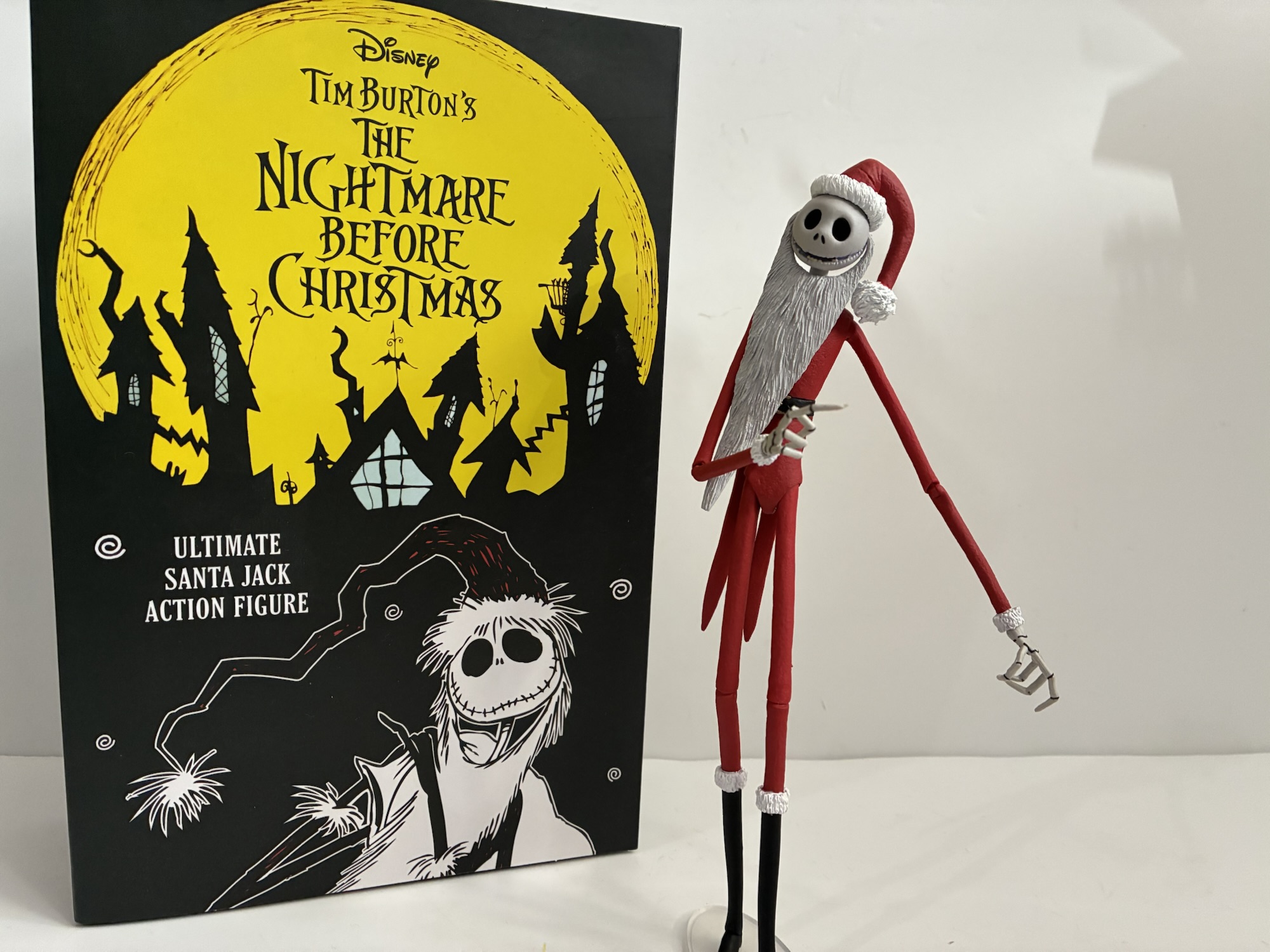 Today’s review has been a long time coming. It was on December 26th, 2024 that I received in the mail a NECA Ultimate Santa Jack action figure based on The Nightmare Before Christmas. Christmas had come and gone so it didn’t make much sense to post a review, so I waited. Nearly a year, in fact, but I’m finally going to take a look at this figure. When NECA returned to The Nightmare Before Christmas in 2024 it went the predictable route by doing two Jack figures and pairing him with Sally. They also did the Mayor, so I guess that part wasn’t typical, and based on how many of those figures I see hanging around store shelves I would assume most were content to just get Jack and Sally. For toy companies, doing two versions of Jack makes a lot of sense. He spends considerable time in the movie with both looks, but also they can conceivably use a lot of the same tools to create both figures. Only, NECA actually opted not to do that from what I can tell.