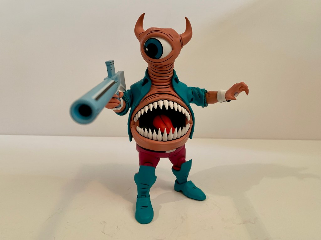 Sometimes, a character design so fun and outrageous can be enough to motivate one into dropping $35 on an action figure. Such was the case with NECA Toys’ Bellybomb figure from its subline of Teenage Mutant Ninja Turtles action figures based on the characters from the Archie Comics series. Of course, in this case it helps that I’ve been collecting most of the TMNT figures put out by NECA so I was predisposed to getting this guy when he dropped, but mostly I wanted him because he just looks so weird. I know next to nothing about the character. He’s some kind of alien or Dimension X creature and he’s a bad guy for the most part. Mostly though, he’s a dude with his mouth in his stomach and eyeballs in his palms – he’s a freak!