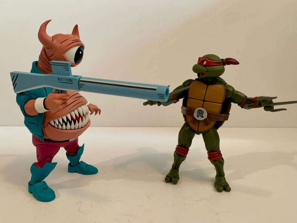 Mondo Gecko is a solid release. The figure doesn’t possess much of a wow factor and part of that is due to it just being so similar to the toon figure and the vintage one, which has in recent years received an update via Super7. The articulation is okay and most of the accessories are solid. He’s not really the right shade of green, but I don’t think that’s really impacting my enjoyment of the figure at all. I do think he should have at least another head for those who aren’t crazy about the expression. I’m also surprised that the jaw isn’t hinged. This is definitely a figure for those who want to assemble the Mighty Mutanimals on their shelf. If you’re a more casual TMNT toy collector then you may feel like you’re covered when it comes to Mondo with one of the other releases.