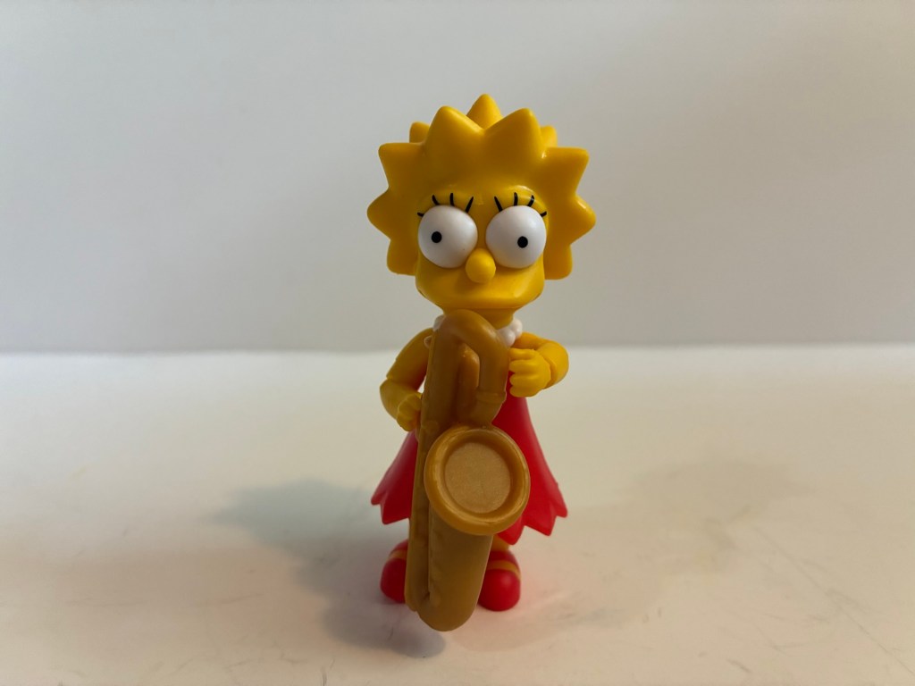 The second wave of 5″ figures consists of Krusty the Clown, Lisa Simpson, Moe the bartender, and Homer again. The Homer is the same as the wave one figure so evidently Jakks felt it needed to make sure it kept shipping the Simpson family figures to keep them in a state of constant availability. And from what I’ve seen, you can walk into pretty much any store that carries this line and find a Homer and a Bart on the pegs, but not in huge numbers so I guess it’s working. We’ll start with Lisa since she’s a member of the titular family. Like Bart, she’s oversized for proper scale standing at about 3.25″. And it’s not so much that she’s too tall, she’s too big proportionately speaking. Her head looks huge compared with Homer’s. She’s also the worst articulated figure in the line so far since her skirt means that she can’t do much with her legs. She comes with her saxophone, which is a solid chunk of gold plastic, which she struggles to wield properly. A little hand was sculpted onto it as a cheat, but her tiny hands still struggle to hang on. You may need to heat it, shove it on, and forget about it.