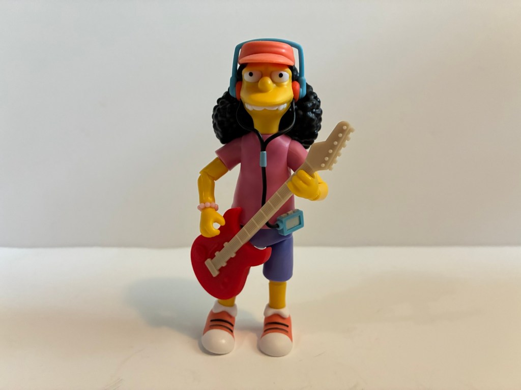 Rounding out wave one is the duo of Groundskeeper Willie and early season star Otto Mann, the bus driver and local burn-out. Otto features a somewhat involved sculpt, especially when compared to Homer and Bart. He’s sporting his hat, headphones, Walkman, and bracelet on his right wrist. His big hair is present which limits the posing of his head to essentially nothing. He looks pretty on-model though with his partially closed eyes and trademark overbite. Paint is sparse as even the headphones look like they’re composed of different colored plastic. The tape deck is painted as are the black lines on his shoes. Otto’s sole accessory is Bart’s left-handed guitar. The sculpt is nice, but the lack of paint is a detraction as it’s just a red brick for the body and a light brown for the neck and fretboard. It also lacks a strap, but it’s light enough that Otto can hold it without much trouble. He looks nice and if I had one nitpick about the sculpt it’s that he should be slouched a little more, but overall it’s solid.