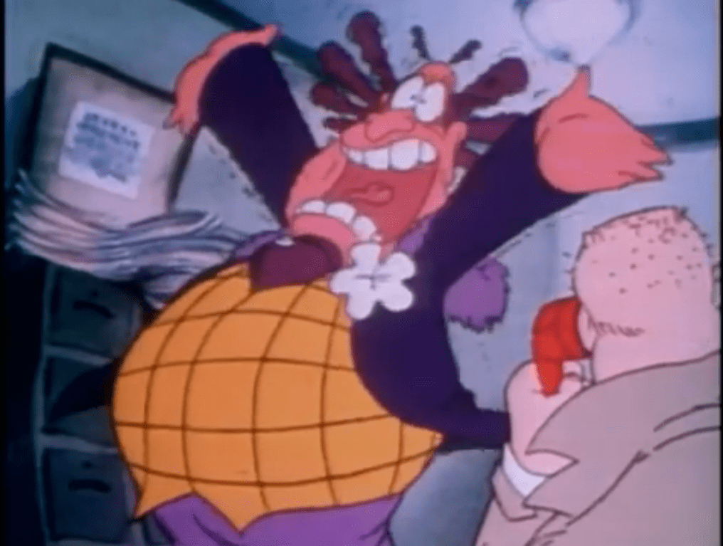 At the spaceship, the mayor, chief, and other townsfolk have gathered around. The chief has a megaphone and is ordering the aliens to come out. When nothing happens, a rather dimwitted townie remarks that maybe they don’t have ears? The mayor gets angry at this suggestion and gets all in this guy’s face for making a perfectly valid suggestion. The chief announces that he’s going to count to ten, and the mayor gets all giddy and decides that he’ll do the same. I don’t like this guy. As the chief counts, the mayor looks absolutely terrified. Marvin them goes zooming through the crowd and few seem to take notice. Then Peter runs by shouting for everyone to stop him and the chief kind of cocks his head. When Peter’s dad runs by shouting “Thief!” then the chief springs into action! He quickly abandons the alien spaceship thing, puts a siren on his head like he’s Inspector Gadget, and takes off. The rest of the townies follow leaving the mayor all alone. When he realizes that everyone left he too runs off, but once he’s a safe distance away from the ship finishes counting to ten.