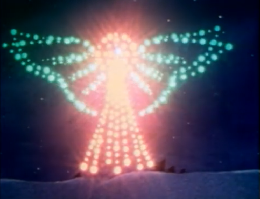 Peter’s mom then asks where the boys went? Well Martha, I think we’re about to find out. Peter’s dad pokes his head out the door to find Peter, Marvin, and Lucy standing in the yard. An instrumental version of “The Twelve Days of Christmas” is our soundtrack and man is that song way better without words. The boys are watching the spaceship take off and they’re soon joined by Peter’s parents and Granny. As they watch it rise into the night sky, it takes on the form of the angel granny made. Then the wings sprout out from it and we can hear Peter calling “Thank you” to the alien lifeforms onboard. The mayor and chief are out there as well and as the mayor nudges the chief we see he’s actually crying at the beautiful sight. The mayor waves and calls out “Merry Christmas, whoever you are!” The camera pulls back to show all of the gathered folks outside, as the spaceship contracts and takes on the form of a star once again and that’s how it ends.