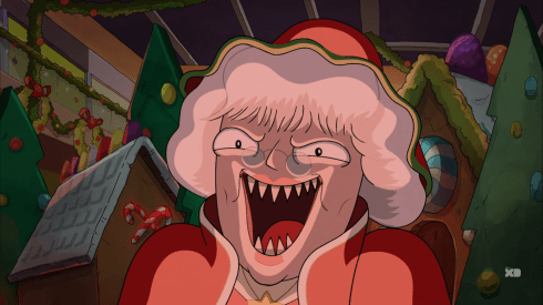 A Nicktoon that came well after Rugrats is Invader Zim and the two could not be further from each other in terms of tone. Invader Zim centers on an alien, Zim, sent by his home world to conquer Earth, only he’s supremely incompetent. He is poorly disguised as a human child, but no one notices save for one boy by the name of Dib. It’s a very cynical show and the Christmas episode puts that on full display by having Zim disguise himself as Santa, poorly, and use his influence to get society to board prison ships where they’ll be sent off to be slaves or something. Only what undoes his scheme is, per usual, his own incompetence. Or I suppose in this instance, his hyper-competence? The Santa suit was built too well and it basically turns Zim into the real deal and Santa isn’t going to enslave all of humanity now is he? The best episodes of Invader Zim show Zim get close to achieving his goals only for things to blow up in his face which helps to make this Christmas installment not just an interesting and offbeat Christmas special, but also a pretty good encapsulation of the larger show.